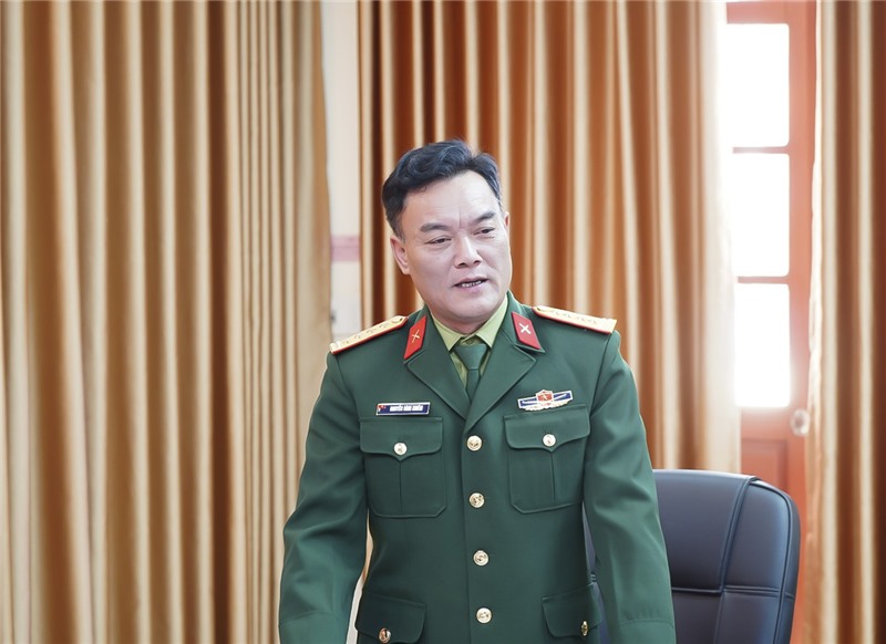 Đồng chí Đại tá Nguyễn Đình Khiêm - Phó Chính uỷ Bộ chỉ huy quân sự tỉnh phát biểu tại hội nghị.