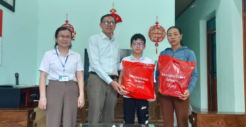 Hội Bảo trợ NKT&TMC tỉnh thăm, tặng quà cho trẻ em khuyết tật tại TP Uông Bí. Ảnh: Hương Giang
