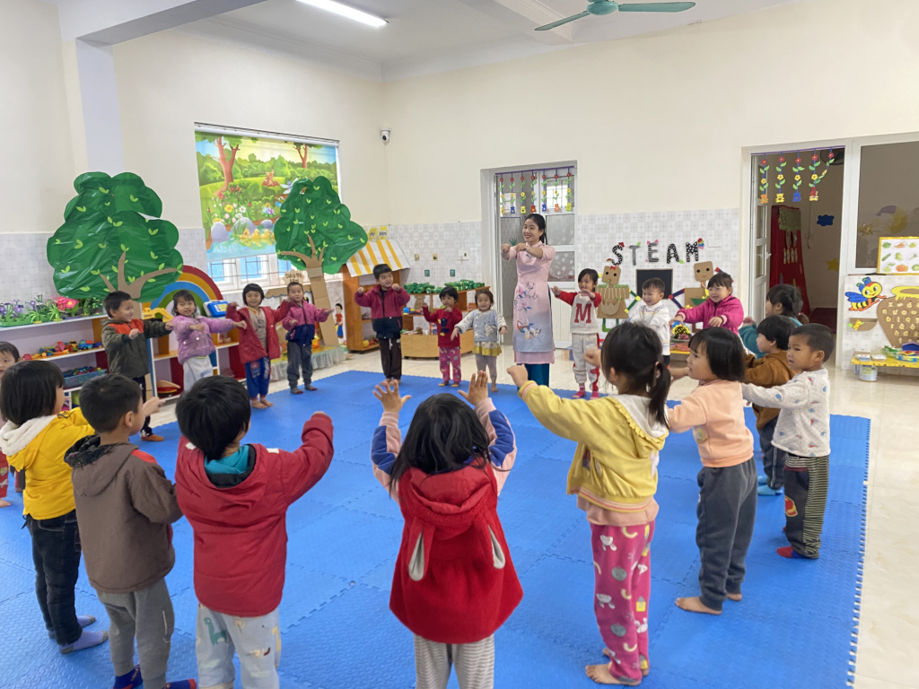 Tiết học múa của trẻ em điểm Trường Mầm non Phiêng Sáp, Trường Mầm non Đồng Tâm (huyện Bình Liêu). Ảnh: Lan Anh
