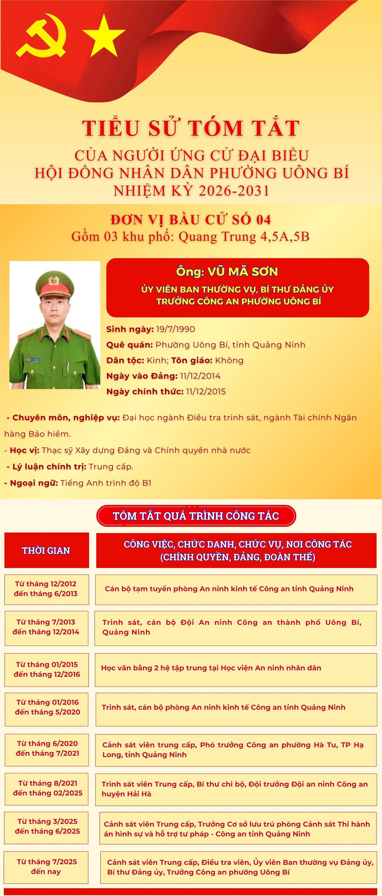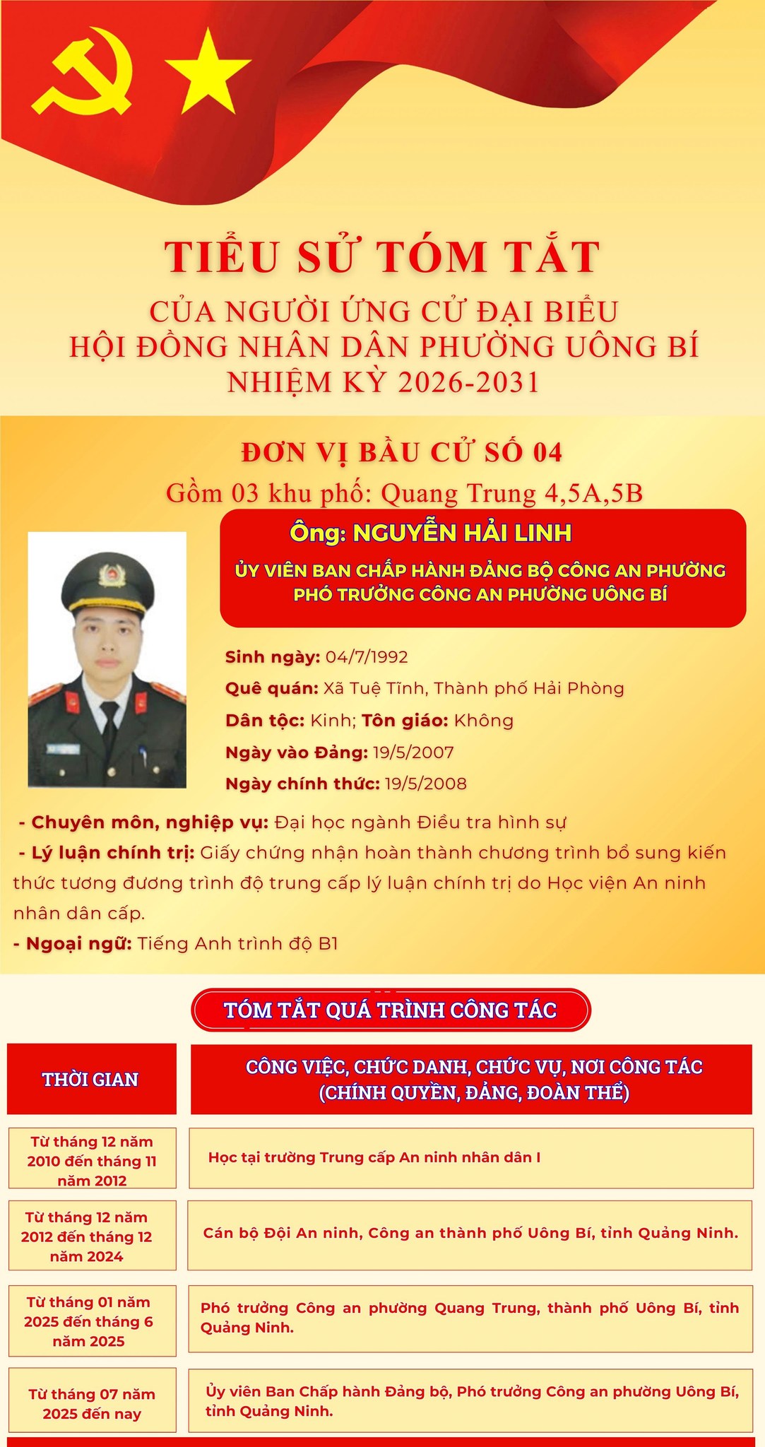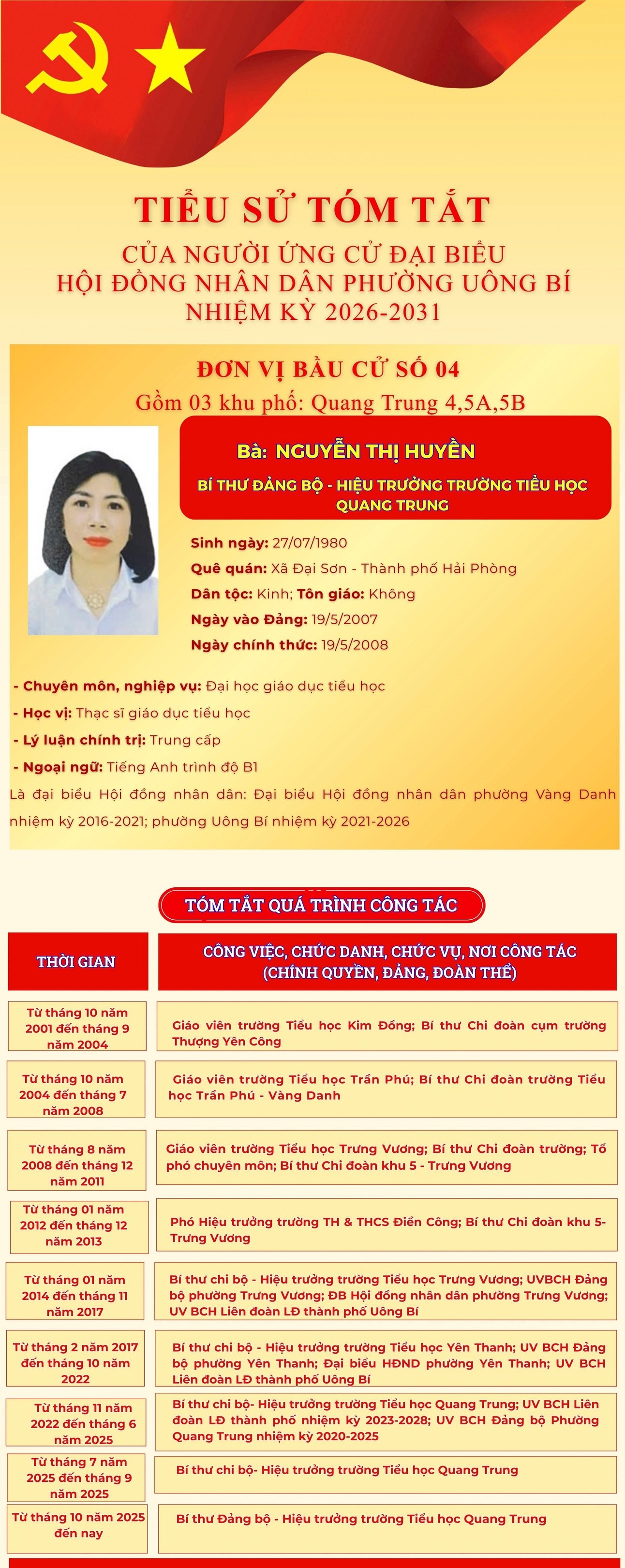 DANH SÁCH CHÍNH THỨC NHỮNG NGƯỜI ỨNG CỬ ĐẠI BIỂU HỘI ĐỒNG NHÂN DÂN PHƯỜNG UÔNG BÍ KHÓA II NHIỆM KỲ 2026 - 2031