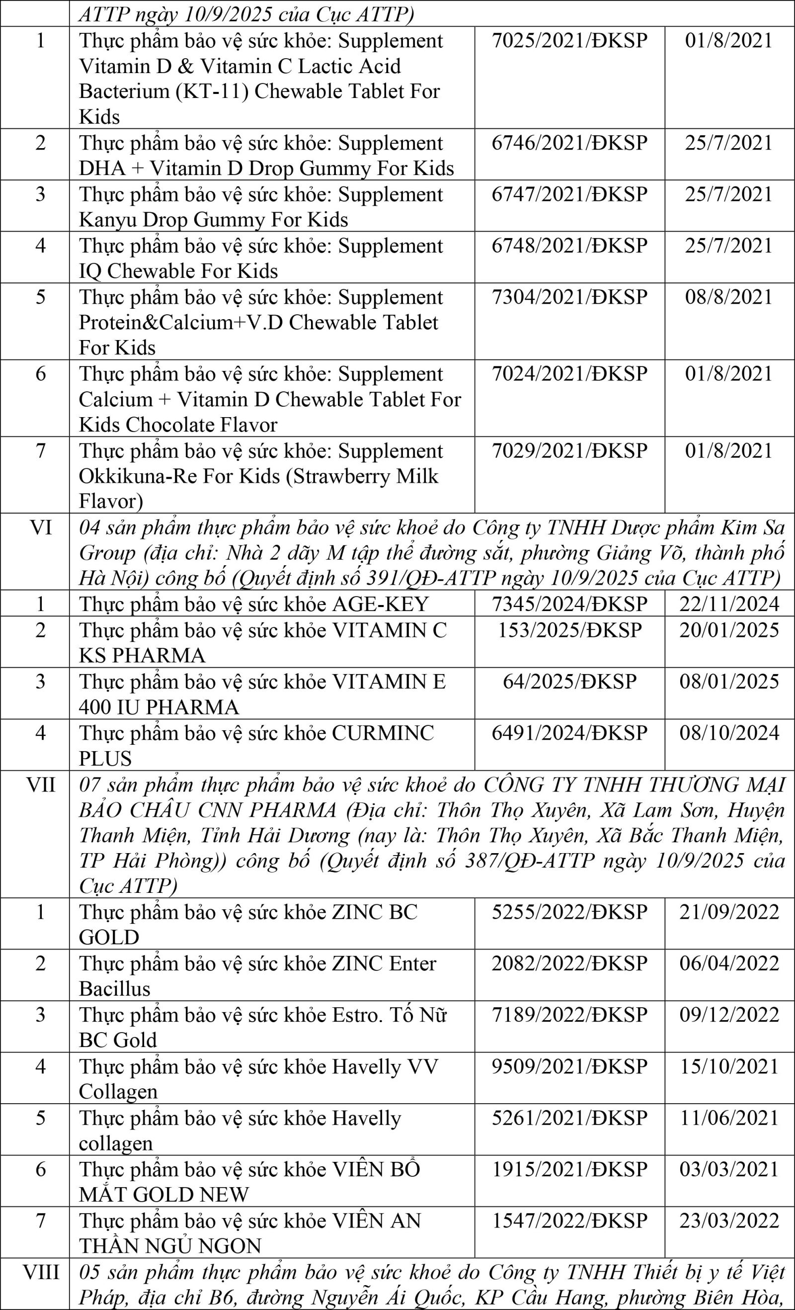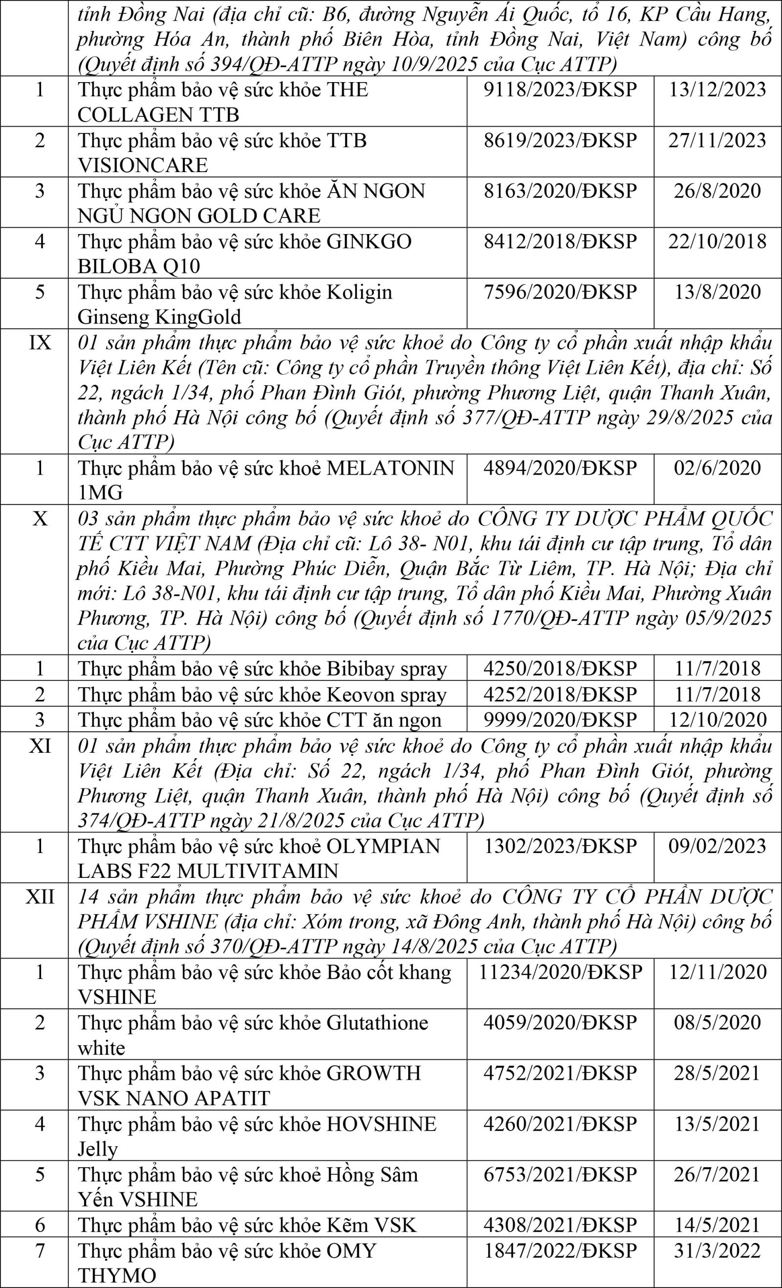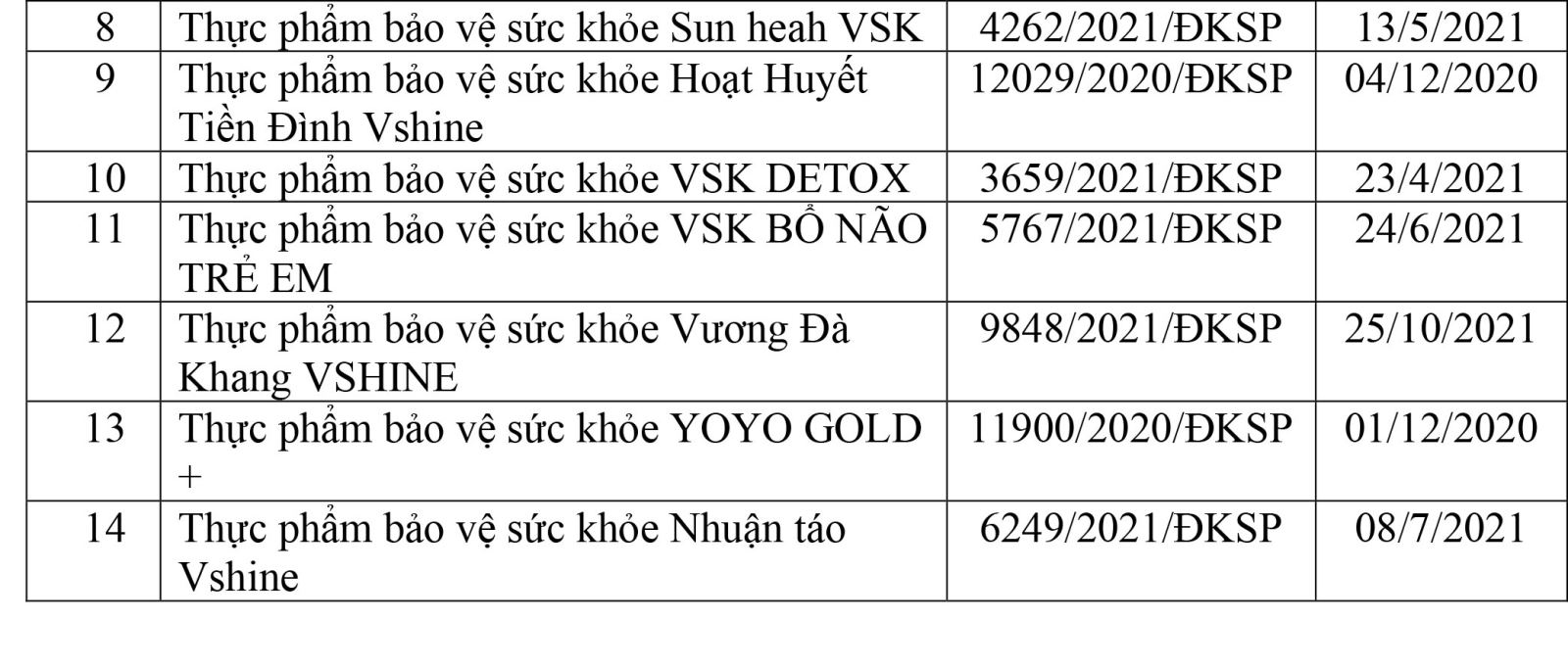 DANH SÁCH 102 SẢN PHẨM THỰC PHẨM BẢO VỆ SỨC KHỎE THU HỒI GIẤY TIẾP NHẬN ĐĂNG KÝ BẢN CÔNG BỐ SẢN PHẨM