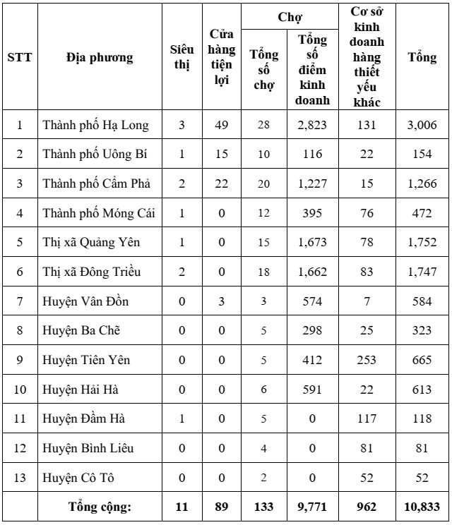 TỔNG HỢP CÁC ĐIỂM KINH DOANH MẶT HÀNG THIẾT YẾU TRÊN ĐỊA BÀN TỈNH QUẢNG NINH