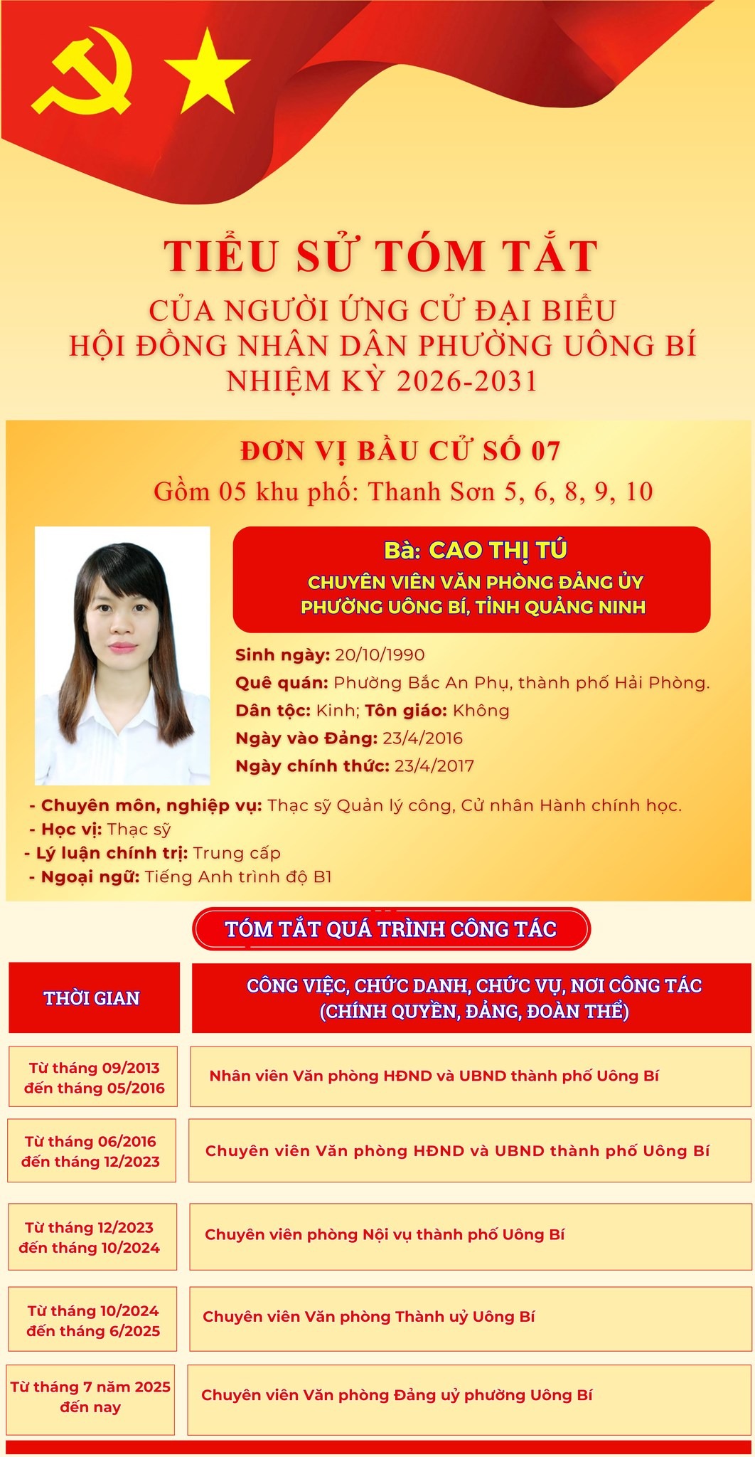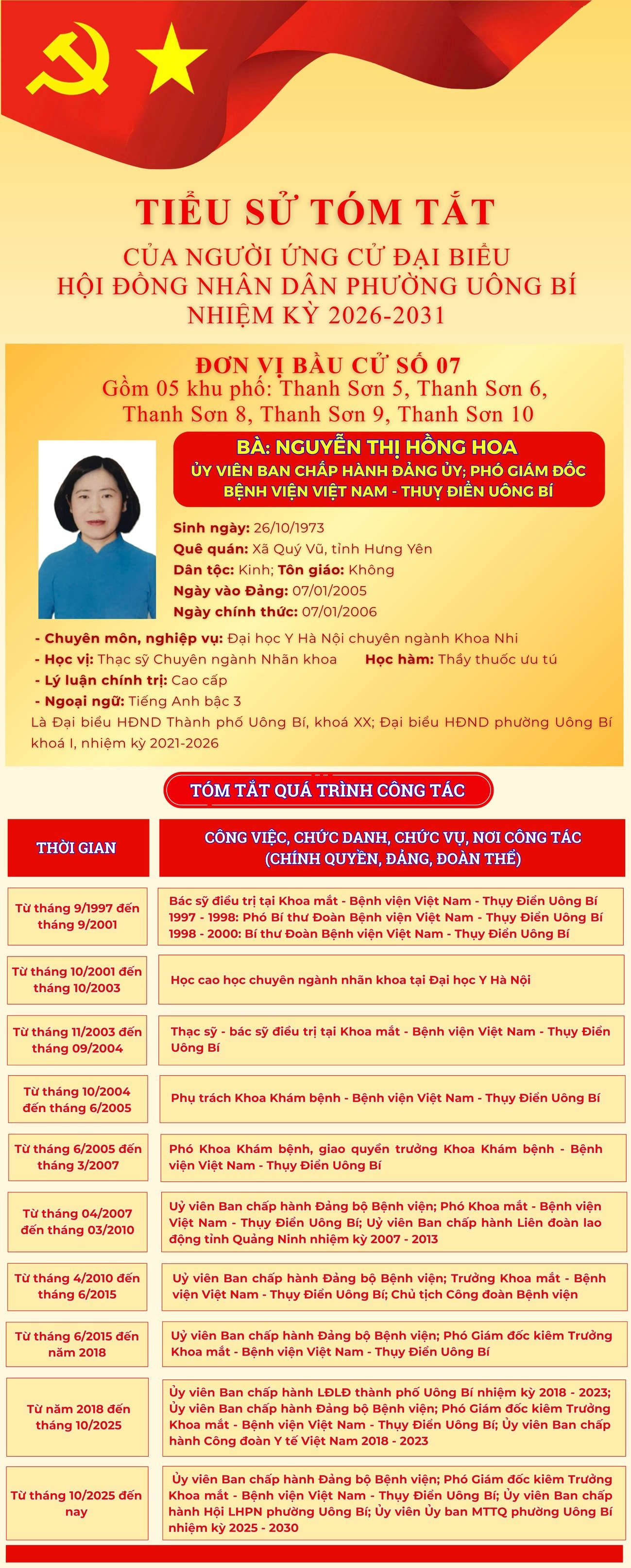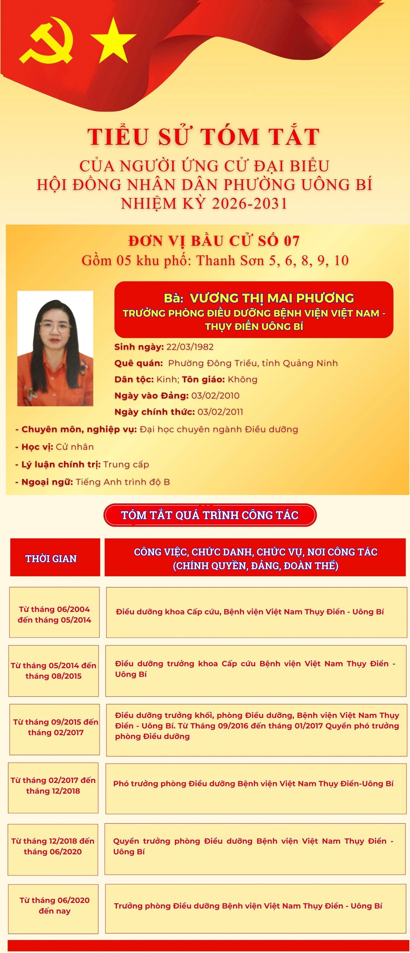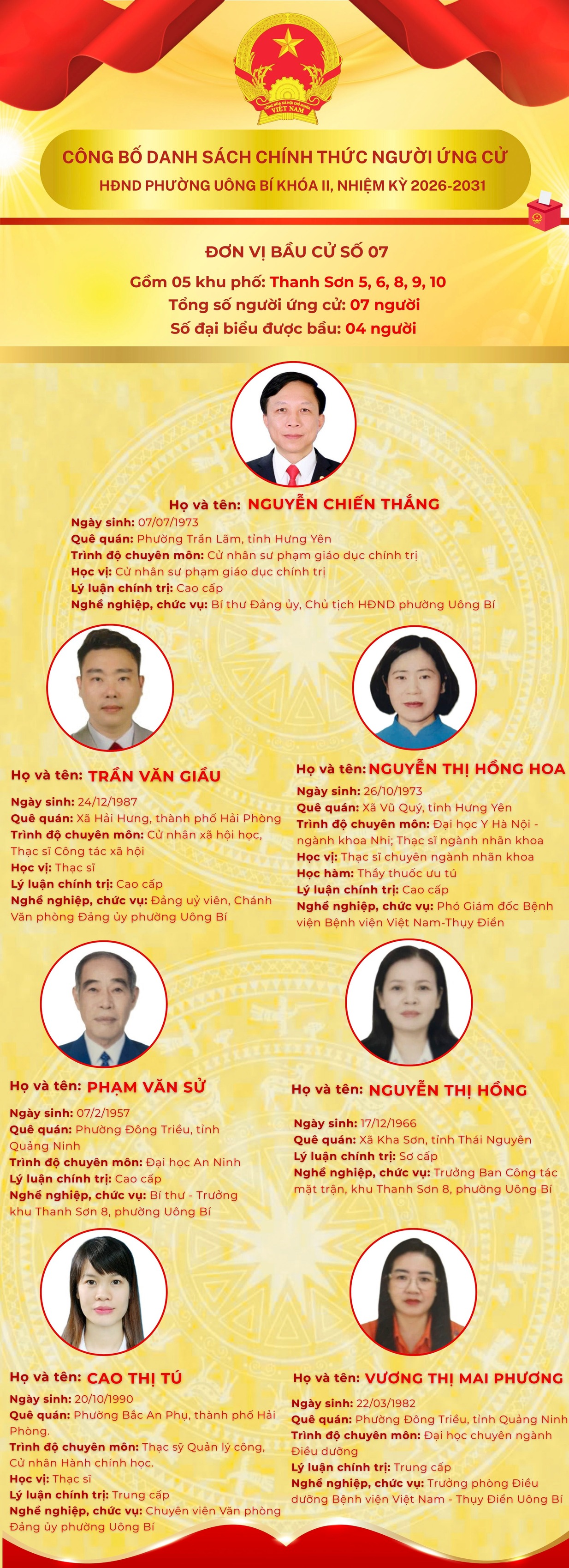 DANH SÁCH CHÍNH THỨC NHỮNG NGƯỜI ỨNG CỬ ĐẠI BIỂU HỘI ĐỒNG NHÂN DÂN PHƯỜNG UÔNG BÍ KHÓA II NHIỆM KỲ 2026 - 2031