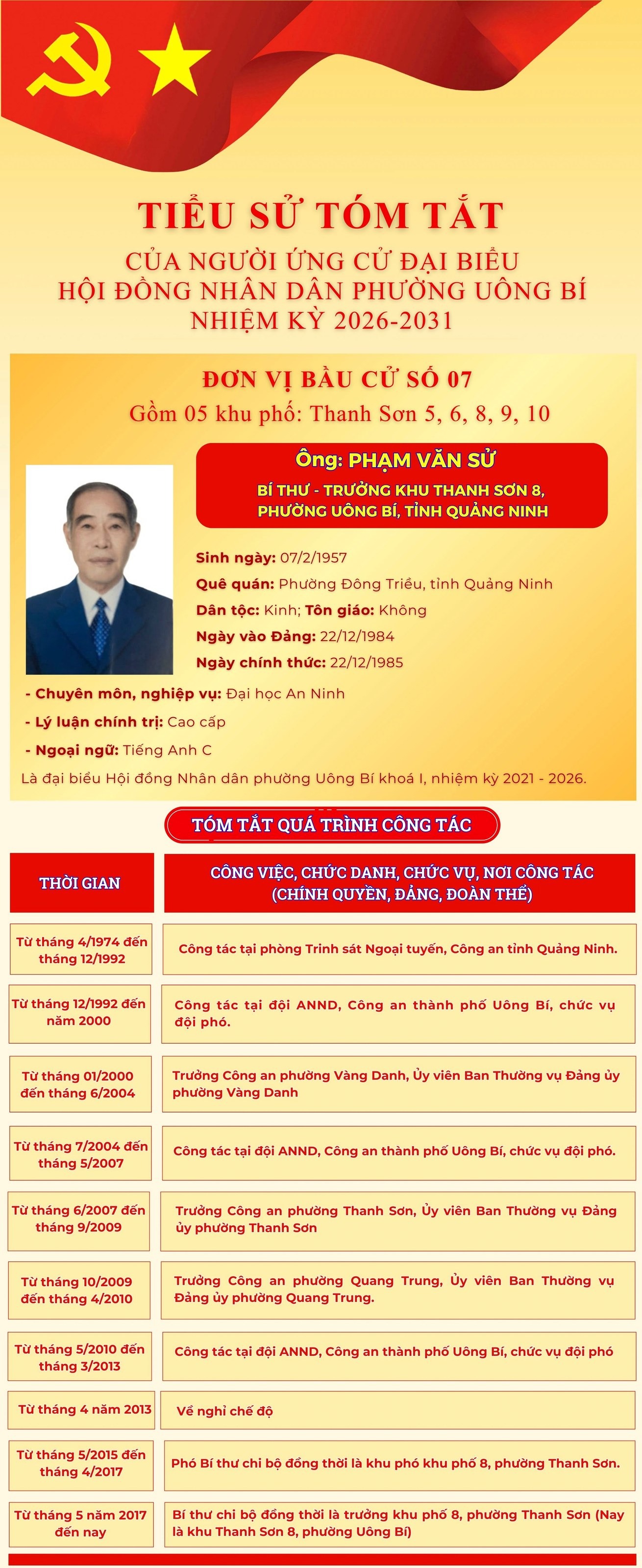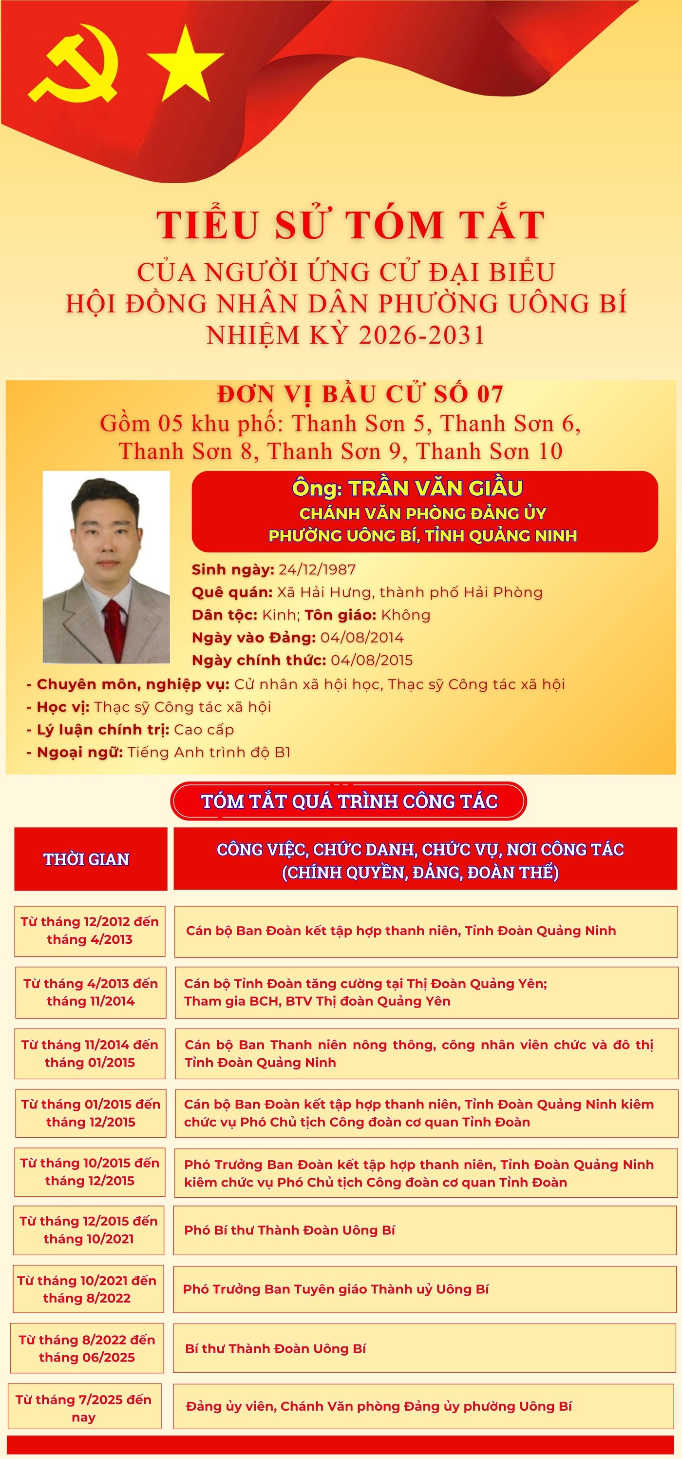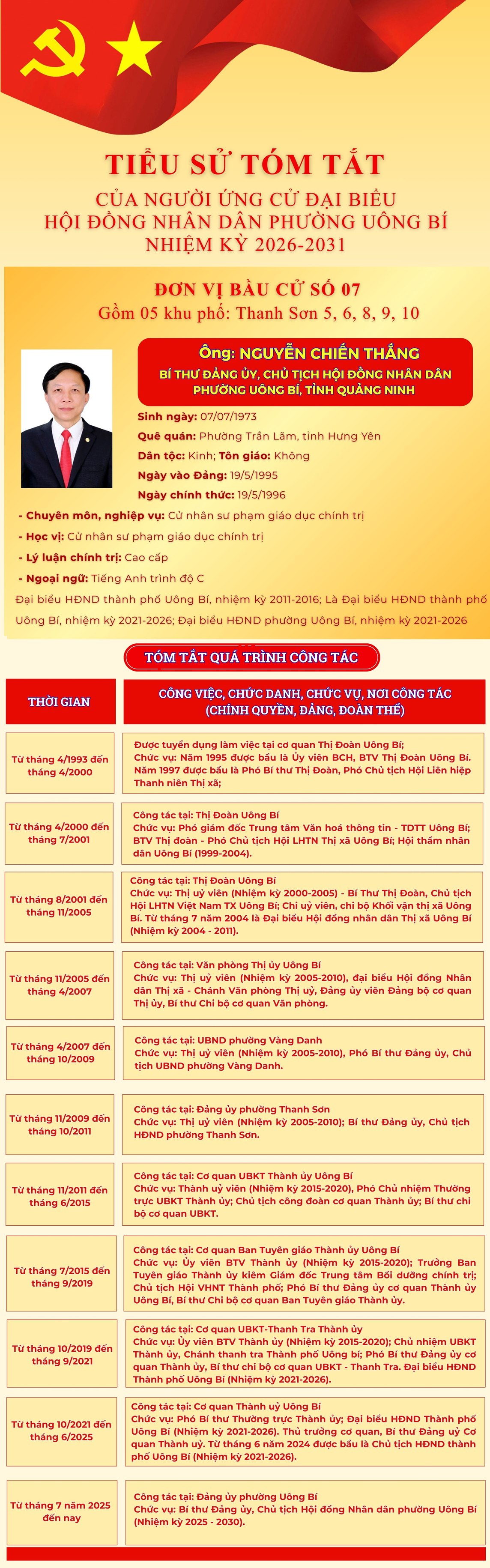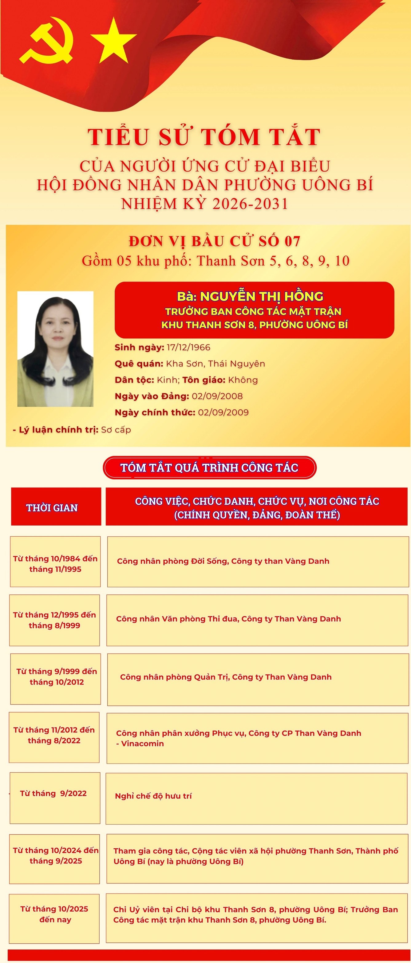 DANH SÁCH CHÍNH THỨC NHỮNG NGƯỜI ỨNG CỬ ĐẠI BIỂU HỘI ĐỒNG NHÂN DÂN PHƯỜNG UÔNG BÍ KHÓA II NHIỆM KỲ 2026 - 2031