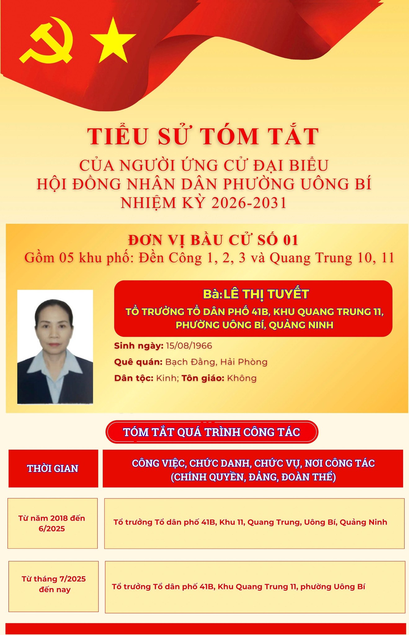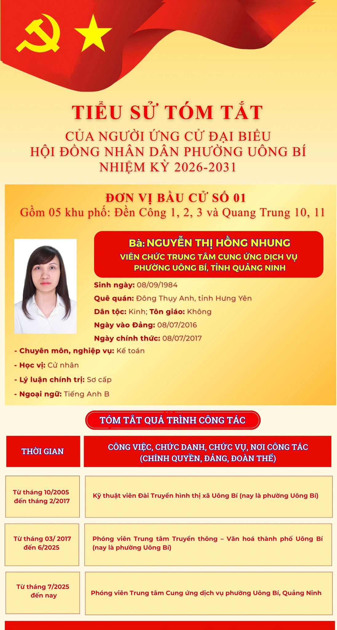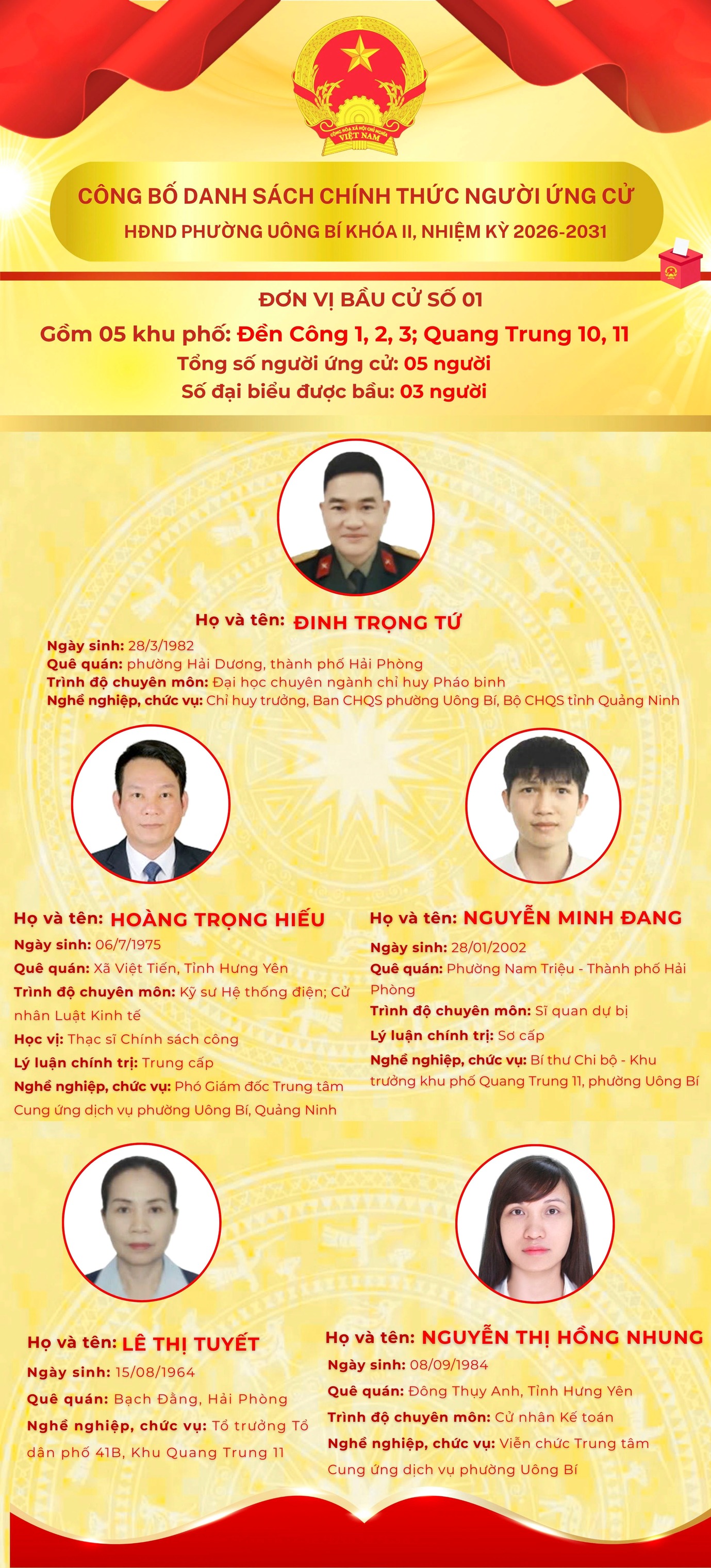 DANH SÁCH CHÍNH THỨC NHỮNG NGƯỜI ỨNG CỬ ĐẠI BIỂU HỘI ĐỒNG NHÂN DÂN PHƯỜNG UÔNG BÍ KHÓA II NHIỆM KỲ 2026 - 2031