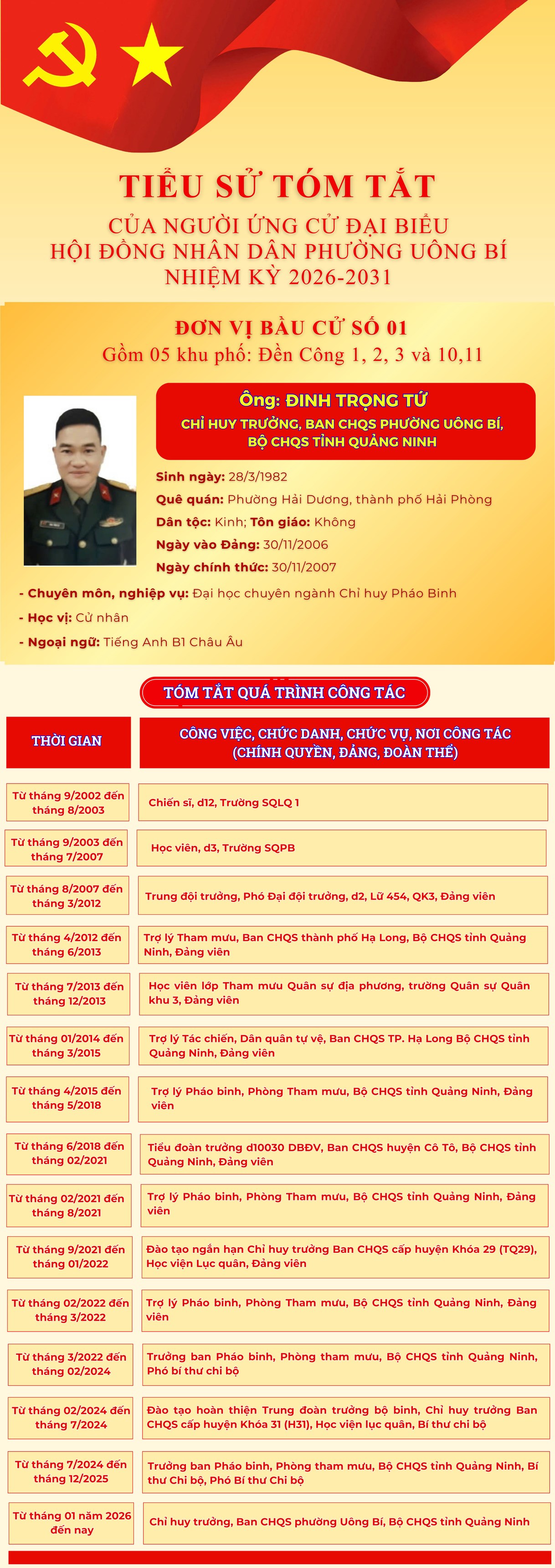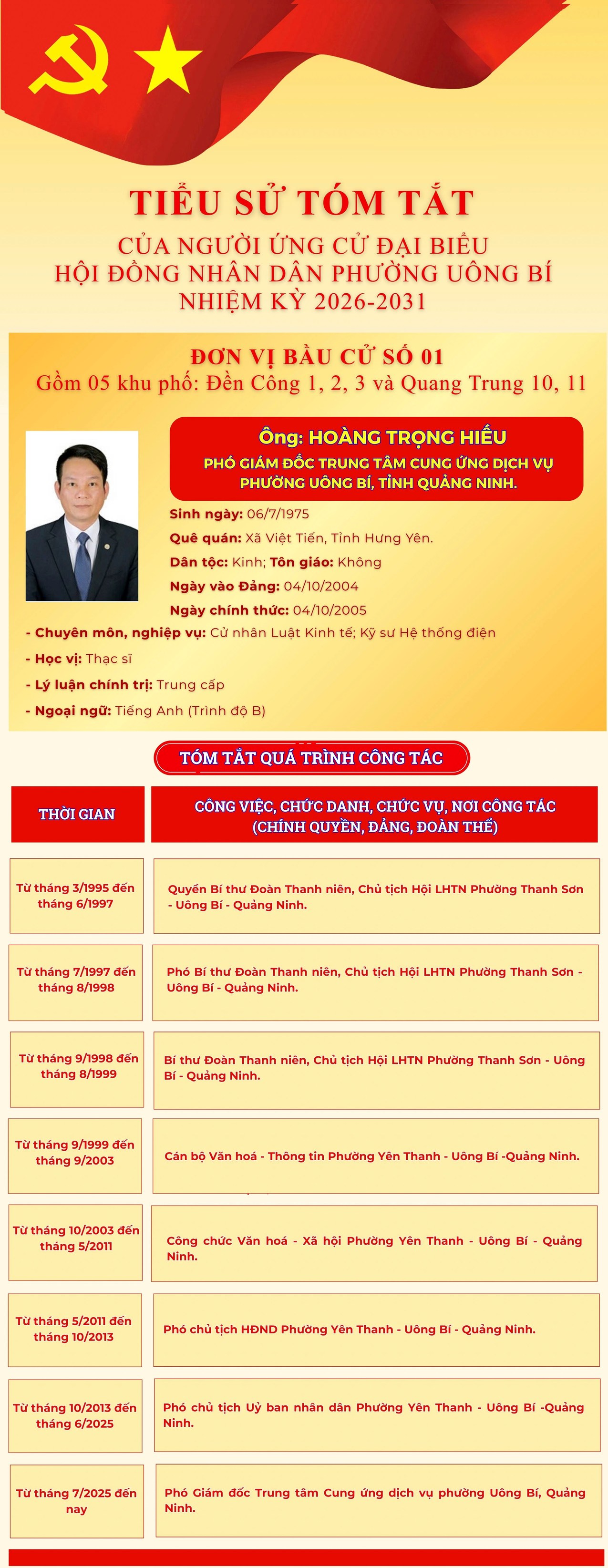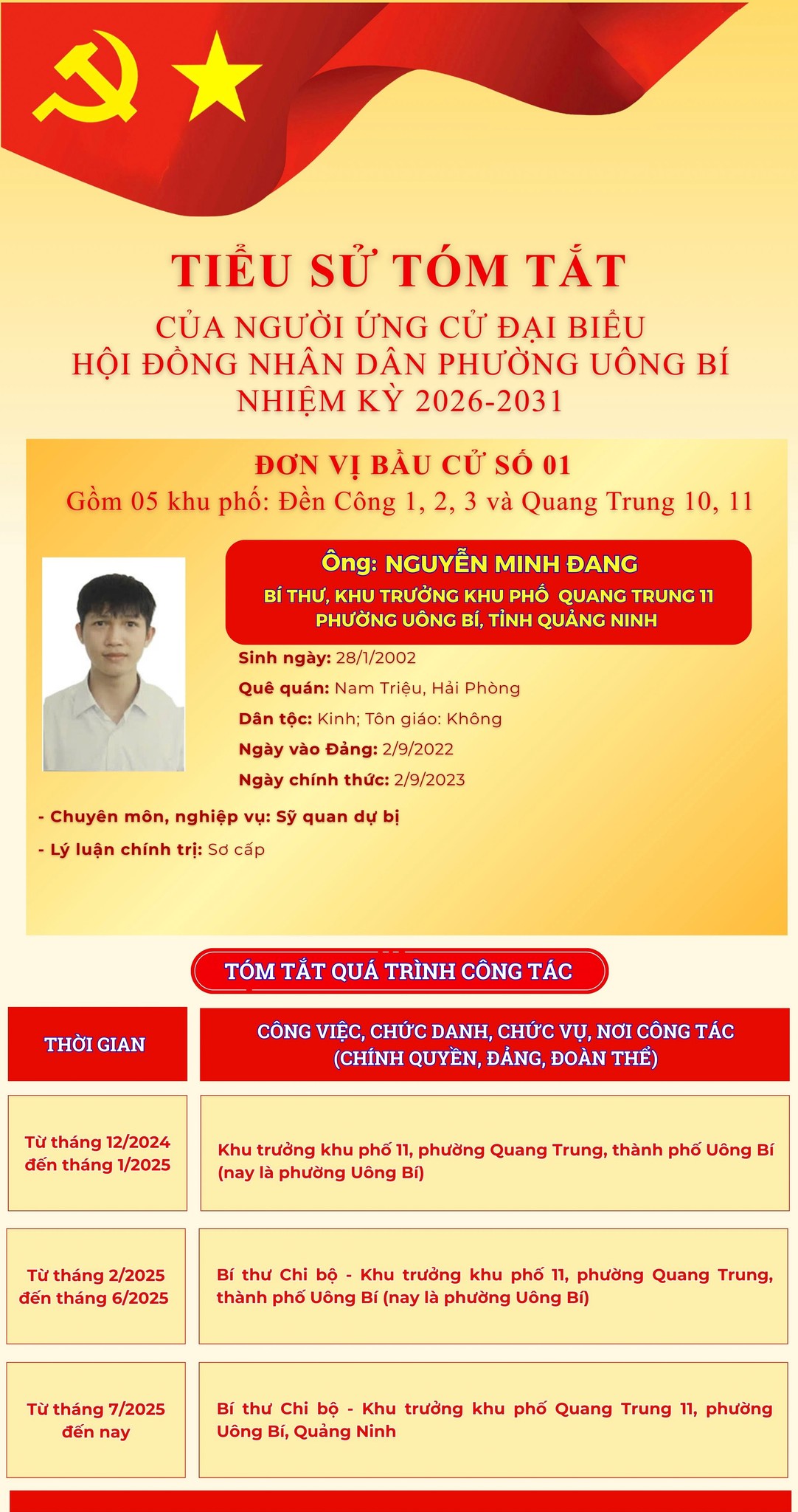 DANH SÁCH CHÍNH THỨC NHỮNG NGƯỜI ỨNG CỬ ĐẠI BIỂU HỘI ĐỒNG NHÂN DÂN PHƯỜNG UÔNG BÍ KHÓA II NHIỆM KỲ 2026 - 2031