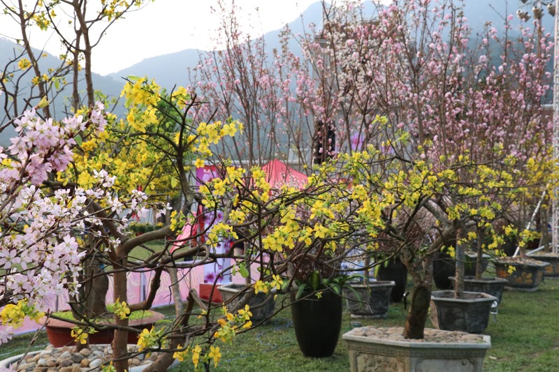 Những cây mai đã được các nghệ nhân chăm chút tỉ mỉ, áp dụng kỹ thuật để khoe sắc vào đúng dịp tổ chức lễ hội.