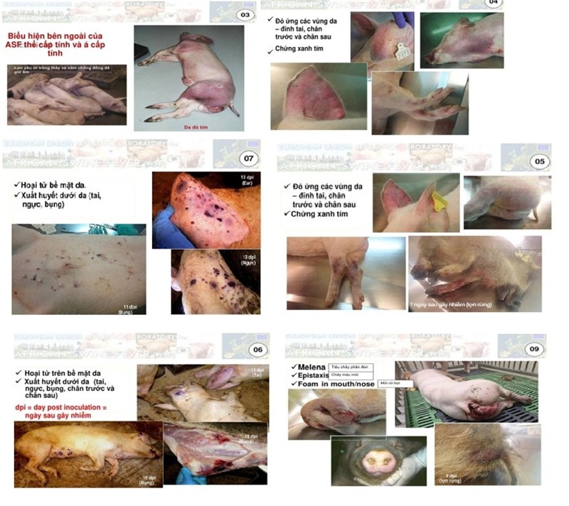 Biểu hiện bên ngoài của ASF ở thế cấp tính và á cấp tính.