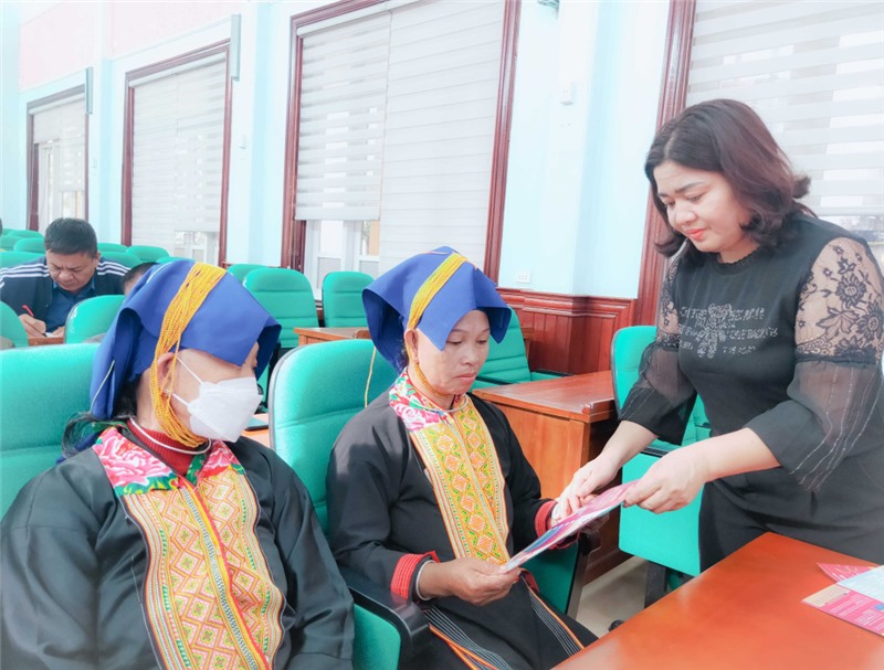 Cán bộ thôn, khu phố và đội ngũ cộng tác viên xã hội huyện Ba Chẽ được cấp phát tài liệu khi tham gia lớp tập huấn nâng cao năng lực công tác tiếp cận cộng đồng, hỗ trợ giảm hại về phòng, chống mại dâm và các tệ nạn xã hội (tháng 10/2022). Ảnh: Bình Minh, Trung tâm TT&VH Ba Chẽ