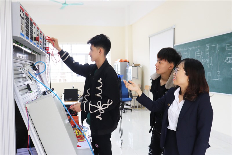 Một tiết học của sinh viên lớp đào tạo cơ điện Trường Cao đẳng Việt - Hàn Quảng Ninh.