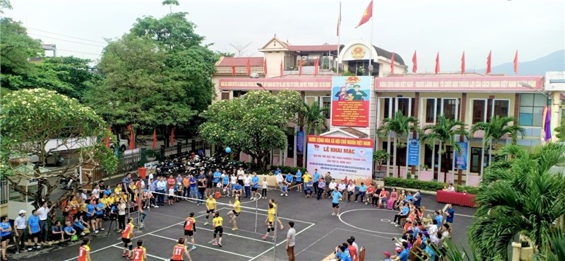 Luyện tập bóng chuyền hơi thu hút đông đảo nhân dân tham gia.