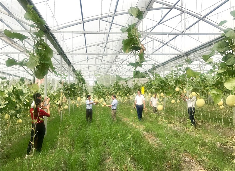 HTX nông nghiệp Hương Việt (phường Bắc Sơn) ứng dụng KHKT hiệu quả trong trồng, chăm sóc dưa lê vân lưới.
