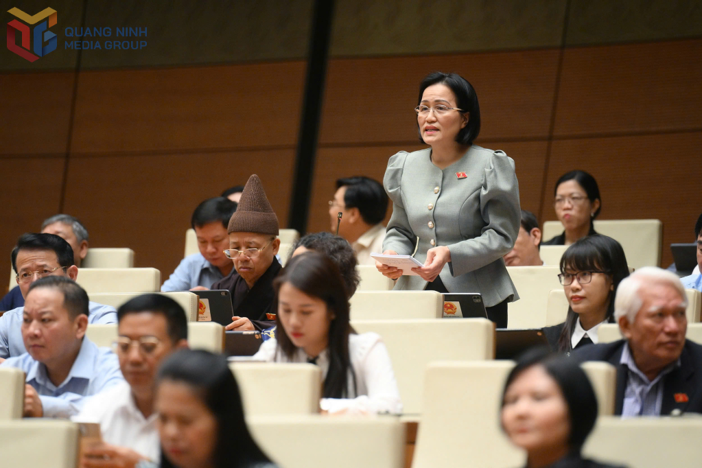 Đại biểu Trần Thị Kim Nhung, Ủy viên Thường trực Ủy ban Pháp luật và Tư pháp của Quốc hội, ĐBQH tỉnh Quảng Ninh, tham gia chất vấn.