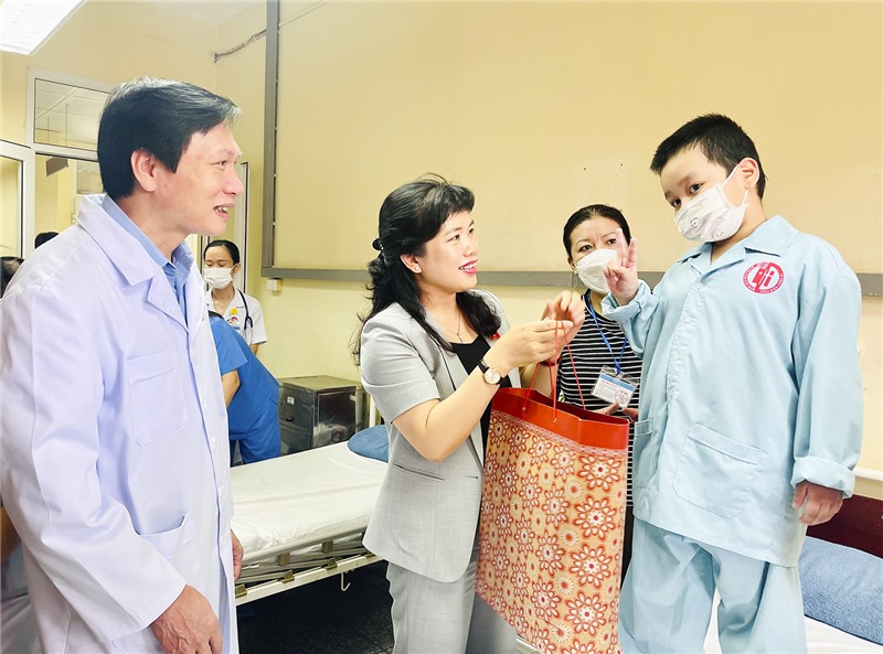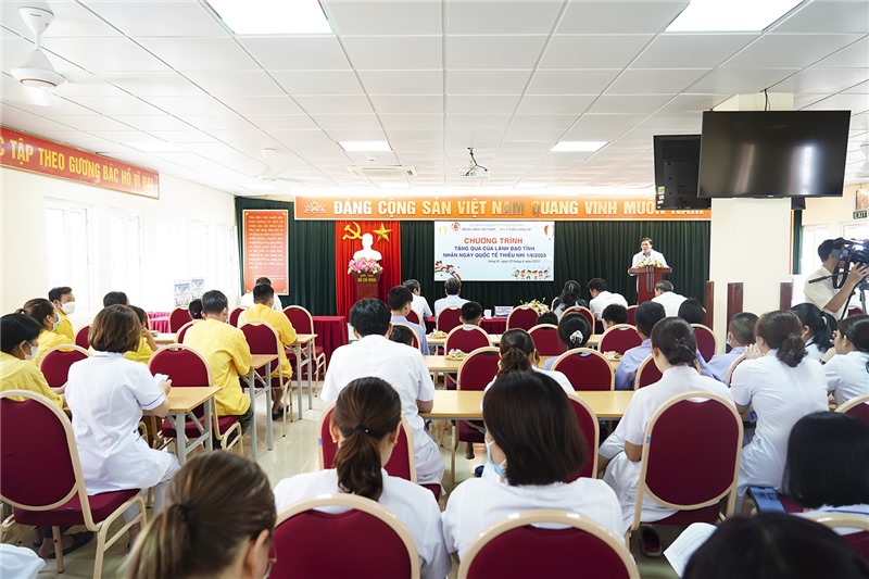 Lãnh đạo thành phố tặng quà bệnh nhi đang điều trị tại Bệnh viện Việt Nam - Thụy Điển.