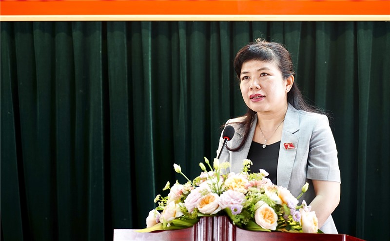 Đồng chí Nguyễn Thị Thu Hà, Tỉnh ủy viên, Phó Trưởng Đoàn ĐBQH tỉnh phát biểu tại chương trình.
