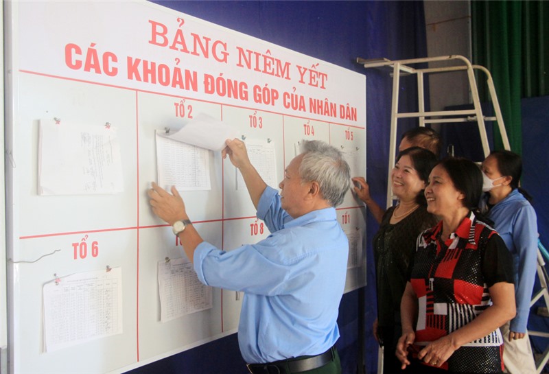Người dân khu phố Nam Sơn (phường Nam Khê, TP Uông Bí) giám sát các khoản đóng góp của nhân dân.