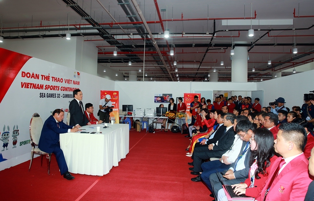 Báo cáo với Phó Thủ tướng, ông Đặng Hà Việt, Tổng Cục trưởng Tổng cục Thể thao, Trưởng Đoàn thể thao Việt Nam cho biết, Đoàn Thể thao Việt Nam dự SEA Games 32 gồm 1.003 thành viên, trong đó có 702 vận động viên, 189 huấn luyện viên, 10 chuyên gia, thi đấu tại 30 bộ môn và 446 nội dung.