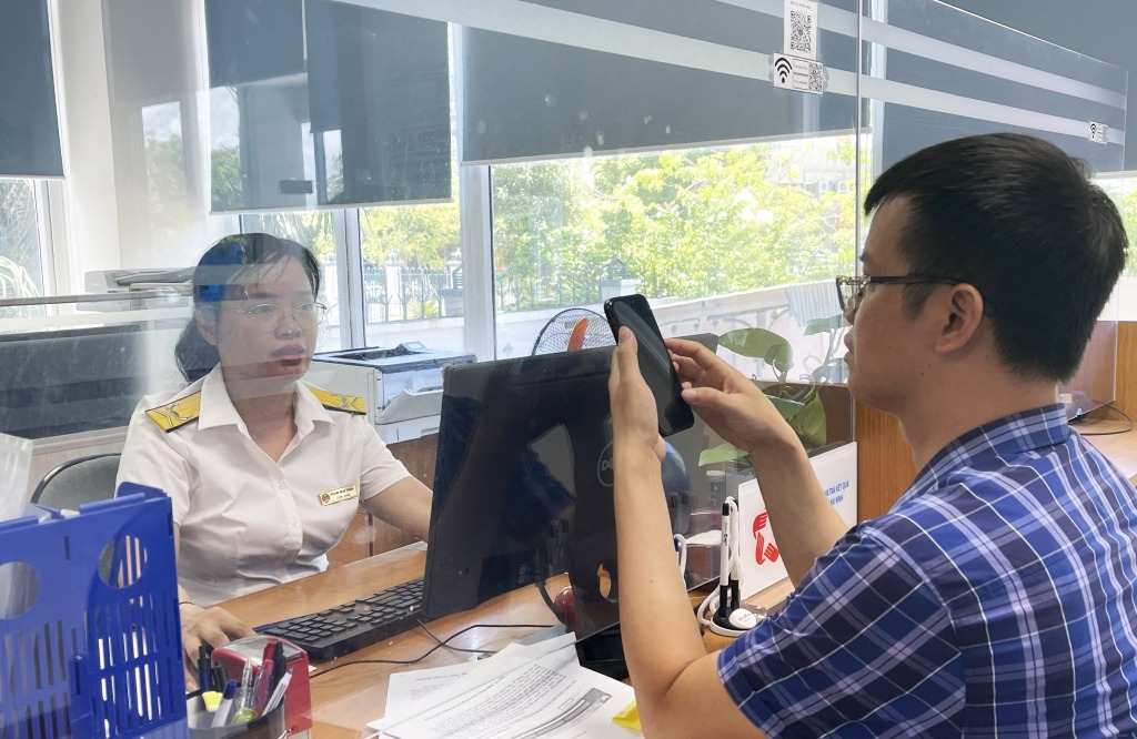Cán bộ Cục Thuế tỉnh Quảng Ninh hướng dẫn người nộp thuế sử dụng các ứng dụng nộp thuế. Ảnh: Minh Đức