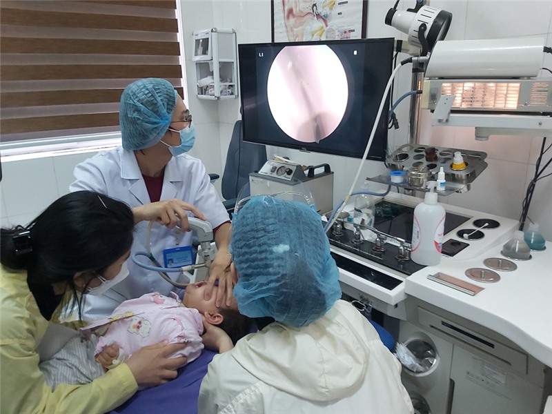Nội soi tai, mũi, họng cho trẻ tại Bệnh viện Sản Nhi tỉnh.