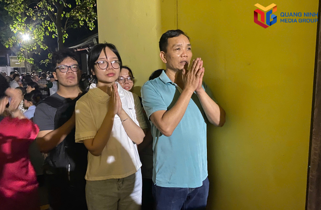 Ghi nhận lúc 22 giờ, dòng người vẫn nối dài từ Cổng Khai tâm đến Cung Trúc Lâm trong tâm thế trang nghiêm, thành kính.