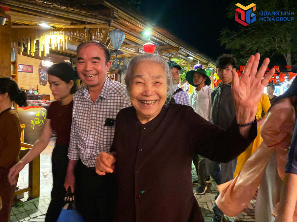 Cụ Trần Thị Nguyệt, 92 tuổi (TP Cẩm Phả) hoan hỉ khi hoàn thành tâm nguyện được chiêm bái xá lợi.