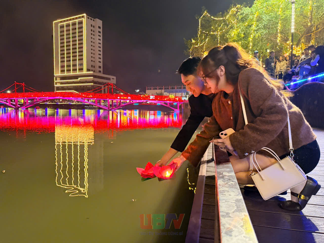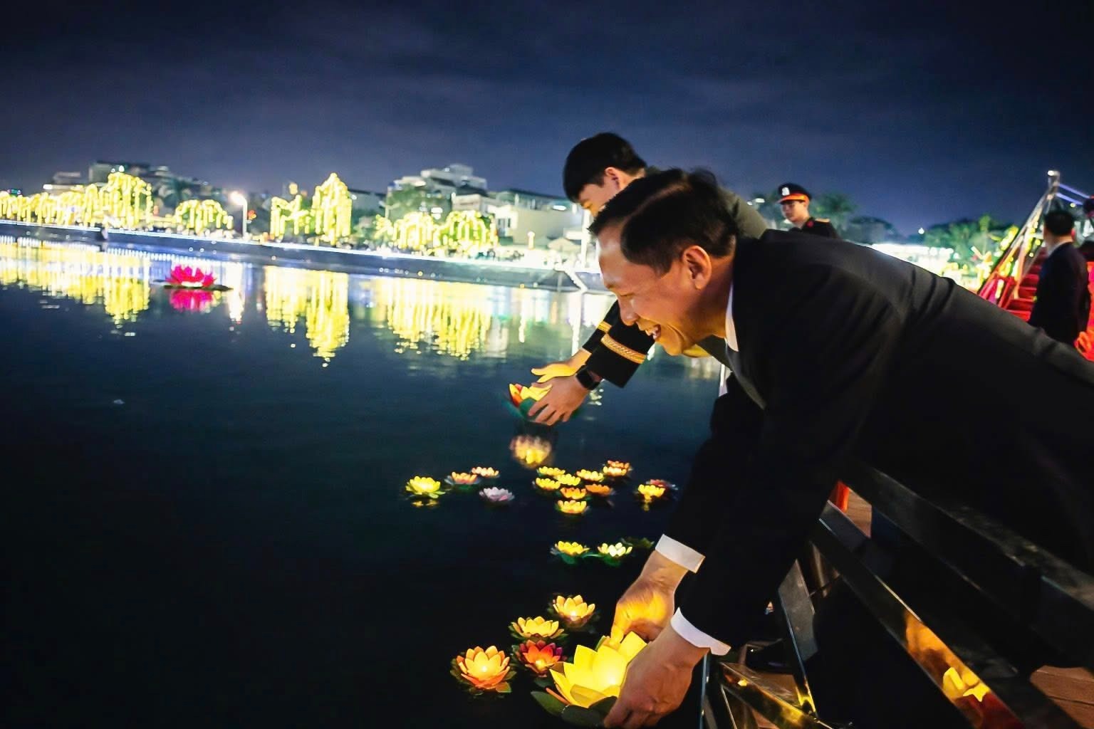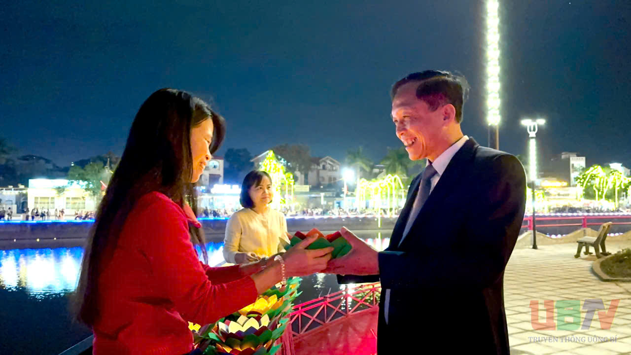 Lãnh đạo phường Uông Bí thả hoa đăng, gửi gắm ước nguyện bình an cho năm mới.