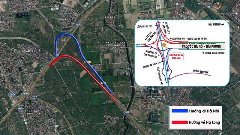 - Điểm đầu được nối với QL1A, đoạn qua quận Long Biên, TP Hà Nội. Tại nút giao này cũng sẽ kết nối Hạ Long với các tỉnh phía Bắc như Bắc Ninh, Thái Nguyên, Lào Cai, Vĩnh Phúc, Hòa Bình...