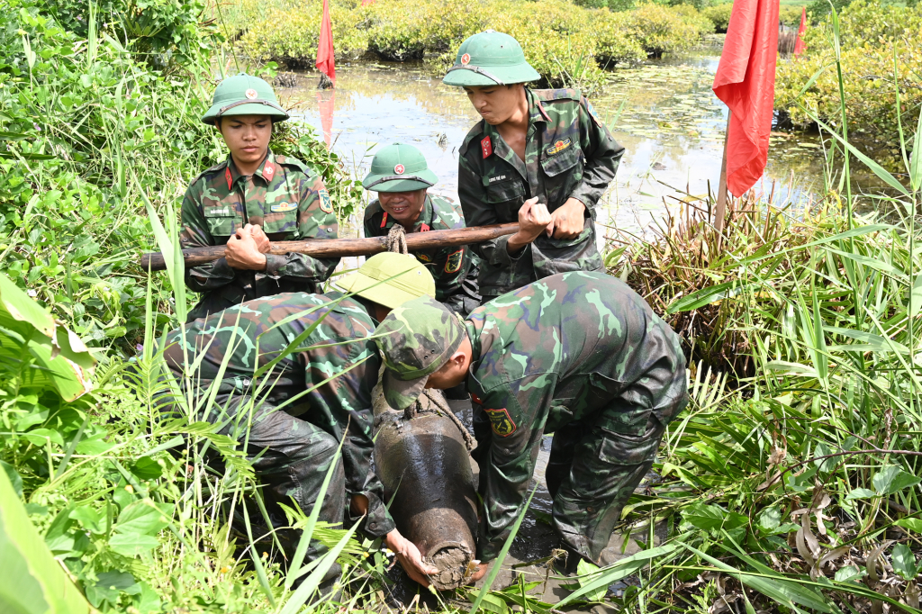Đội thi công rà phá bom mìn, vật nổ, Tổng công ty Xây dựng Lũng Lô phát hiện quả bom trong quá trình thi công dự án.