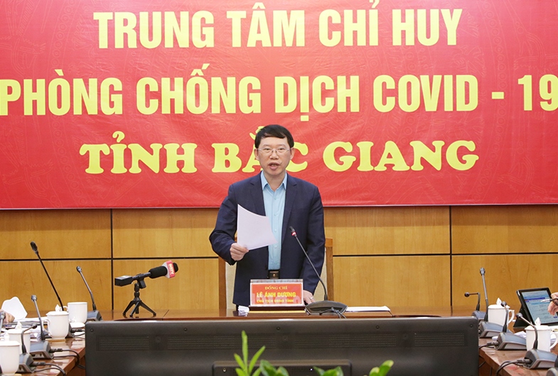 Kết luận hội nghị, Chủ tịch UBND tỉnh Bắc Giang, Lê Ánh Dương khẳng định tình hình dịch trên địa bàn tỉnh Bắc Giang vẫn diễn biến phức tạp, có ca bệnh trong khu, cụm công nghiệp, cộng đồng, bên ngoài xâm nhập, thậm chí có ca bệnh không rõ nguồn lây.