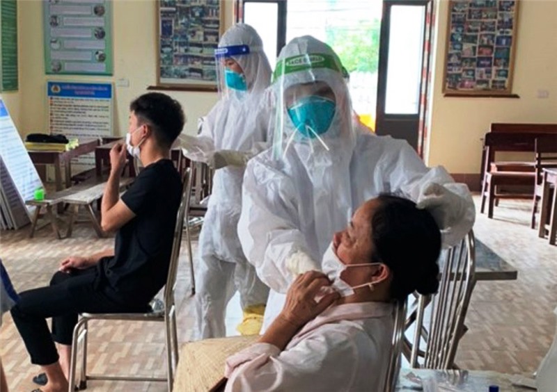 Lực lượng y tế lấy mẫu xét nghiệm cho người dân xã Nội Hoàng.