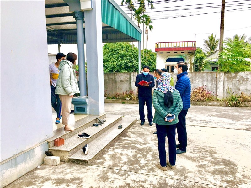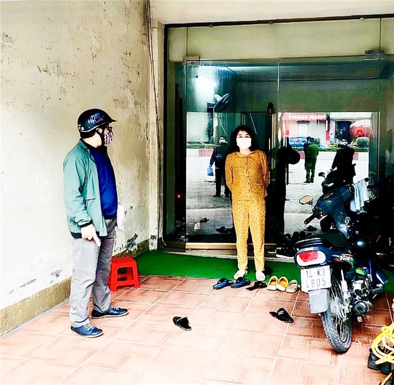 Lực lượng chức năng phường Phương Nam phối hợp kiểm tra công nhân thực hiện cách ly tại gia đình.
