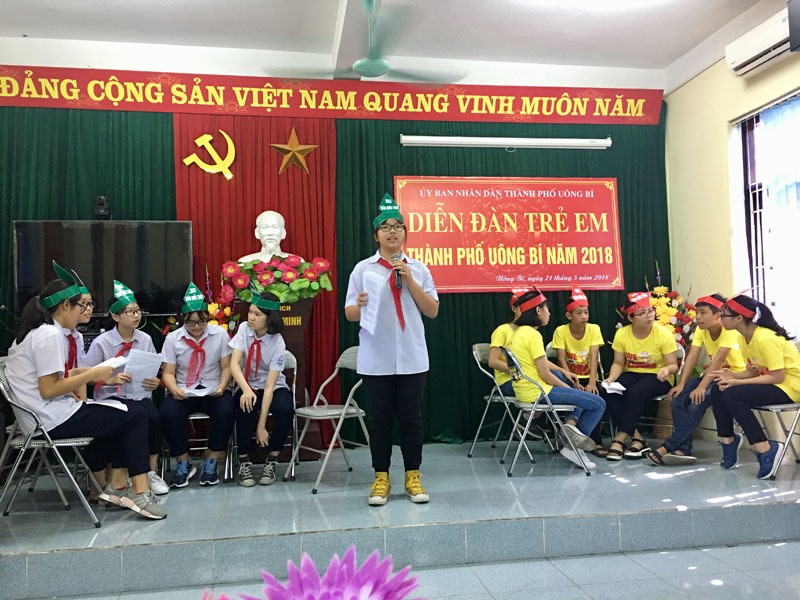 Ngày 21-5, tại Trường THCS Trần Quốc Toản, thành phố Uông Bí tổ chức Diễn đàn trẻ em năm 2018. Tham dự có đồng chí Nguyễn Thị Thúy, Phó Giám đốc Sở Giáo dục và Đào tạo, lãnh đạo các phòng, ban, ngành thành phố, giáo viên các trường phổ thông trên địa bàn và 80 học sinh của Trường THCS Trần Quốc Toản.