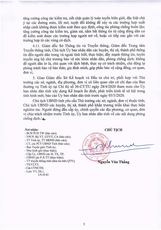 Ngày 29/4, UBND tỉnh ban hành Điện khẩn số 08/ĐK-UBND về việc thực hiện nhiệm vụ phòng, chống dịch COVID-19 trong giai đoạn ổn định kinh tế - xã hội trên địa bàn tỉnh.