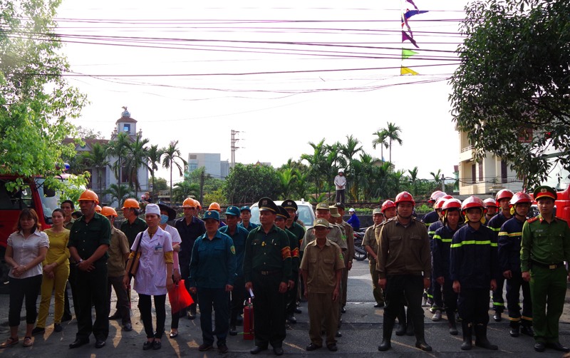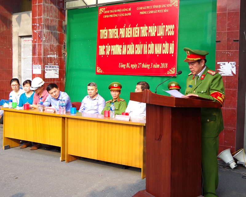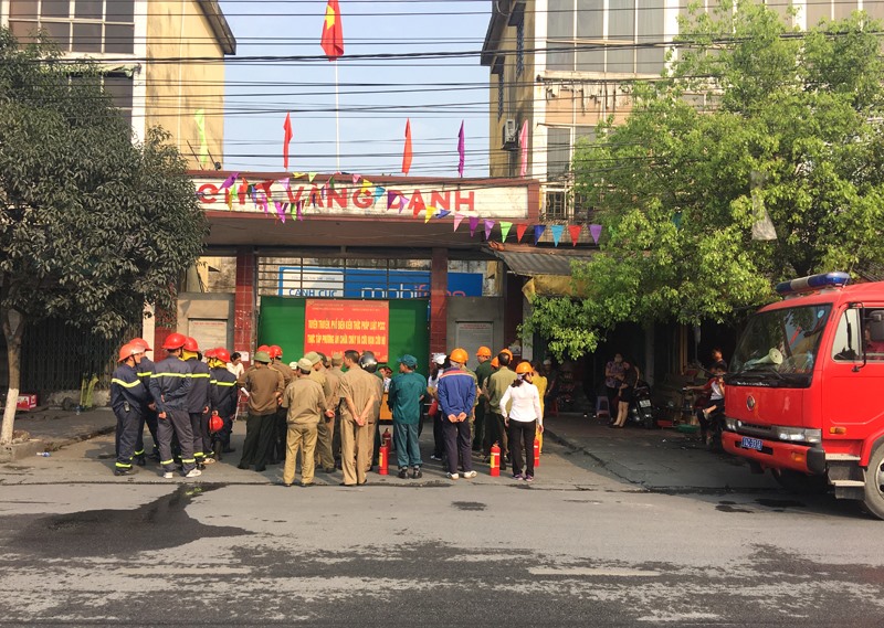 Chiều ngày 27-3, Phòng CS PCCC số 4, UBND phường Vàng Danh phối hợp tổ chức diễn tập phương án chữa cháy, cứu nạn, cứu hộ tại chợ Vàng Danh.