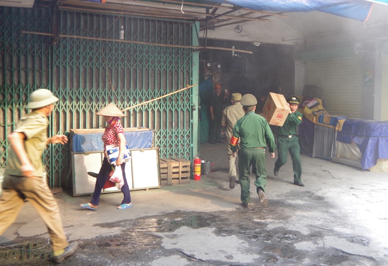 Nhận được tin báo, phòng CS PCCC số 4 khẩn chương huy động lực lượng, phương tiện nhanh chóng tiếp cận hiện trường, triển khai đội hình, tổ chức chữa cháy, cứu người mắc kẹt, sơ tán tài sản trong chợ… Trong khoảng thời gian ngắn, các lực lượng đã phối hợp đưa người mắc kẹt đến nơi an toàn, đám cháy được khống chế.
