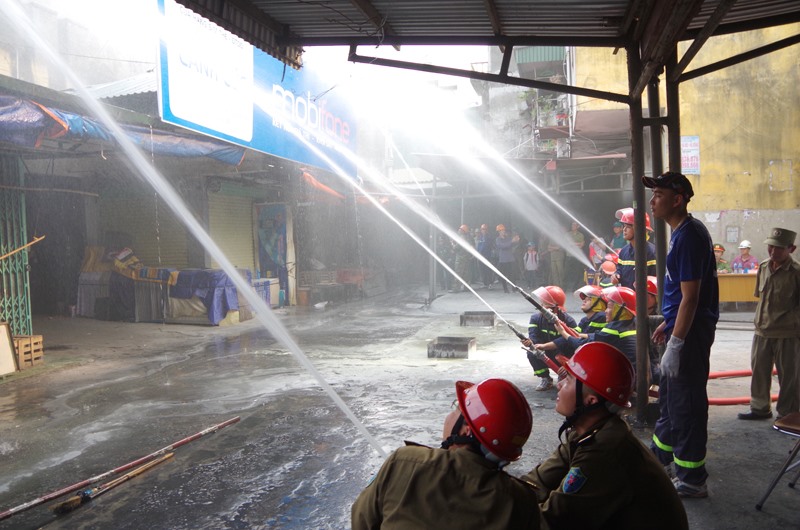 Diễn tập phương án chữa cháy, cứu nạn cứu hộ tại chợ Vàng Danh