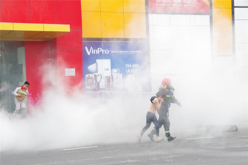 Diễn tập phương án chữa cháy và cứu nạn cứu hộ tại Trung tâm thương mại Vincom+