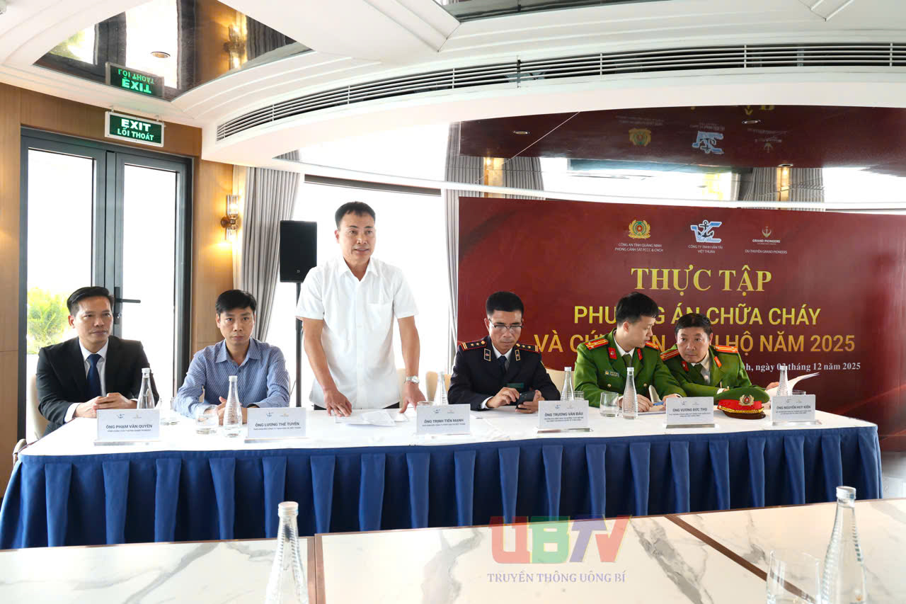 Ngày 03/12, Phòng Cảnh sát PCCC & CNCH, Công an tỉnh Quảng Ninh phối hợp với Công ty TNHH vận tải Việt Thuận tổ chức diễn tập phương án chữa cháy và cứu nạn cứu hộ đối với tàu thủy vận chuyển khách du lịch trên du thuyền Grand Pioneer .