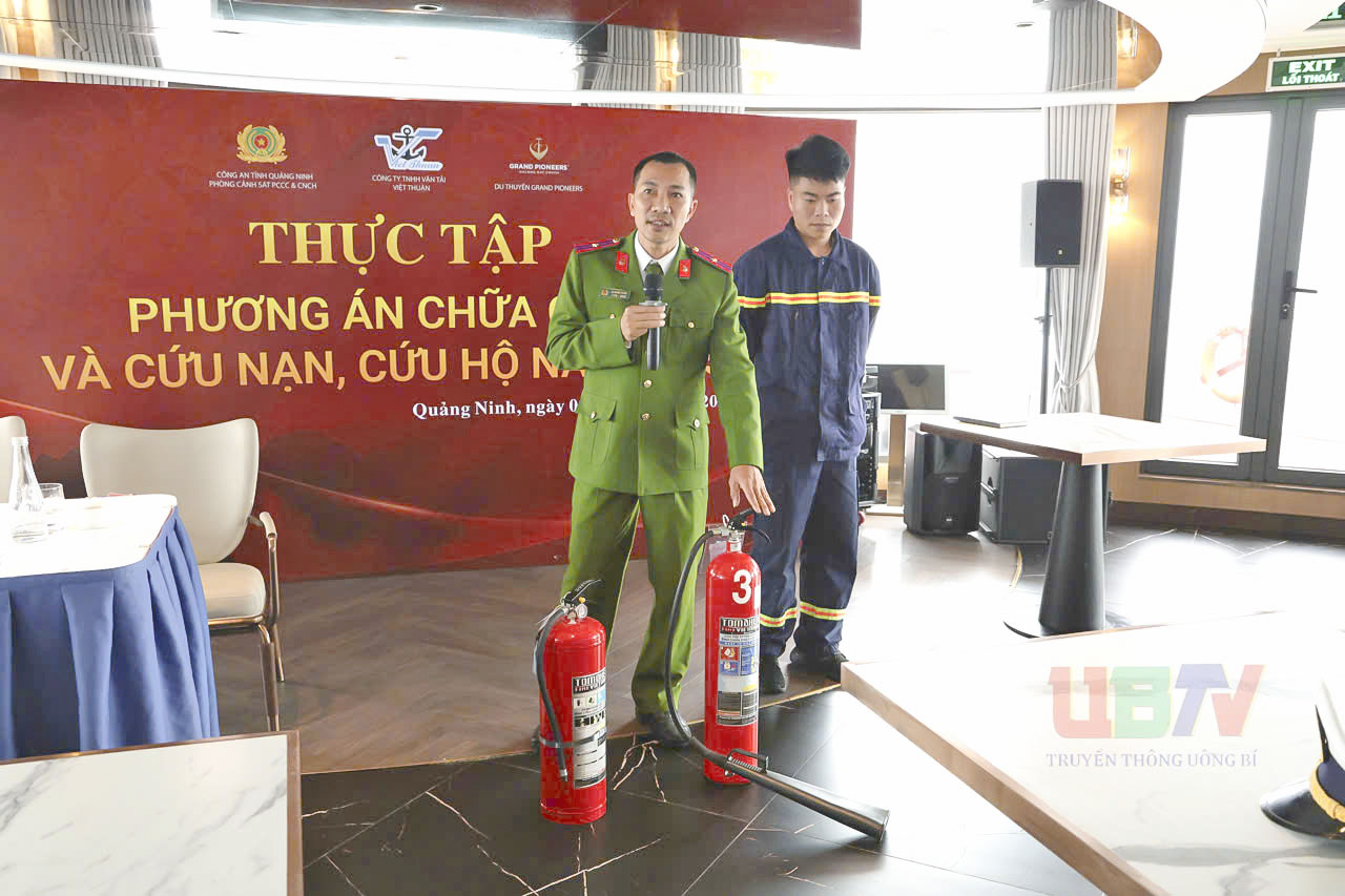 Trong chương trình, cán bộ nghiệp vụ thuộc Phòng Cảnh sát PCCC và CNCH, Công an tỉnh Quảng Ninh đã tuyên truyền, huấn luyện một số nội dung liên quan đến công tác PCCC cho cán bộ, thuyền viên, nhân viên phục vụ trên các tàu chở khách du lịch của Công ty TNHH vận tải Việt Thuận. Đồng thời hướng dẫn, huấn luyện nghiệp vụ với nội dung diễn tập phương án chữa cháy và cứu nạn cứu hộ đối với tàu thủy vận chuyển khách du lịch trên du thuyền Grand Pioneer 1.