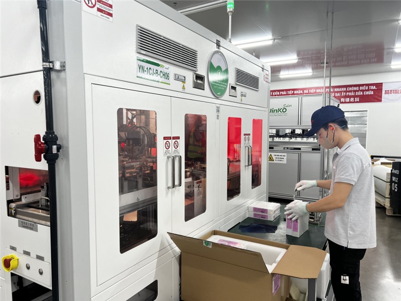 Sản xuất tấm silic tại Công ty TNHH Công nghiệp Jinko Solar Việt Nam (KCN Sông Khoai, TX Quảng Yên).