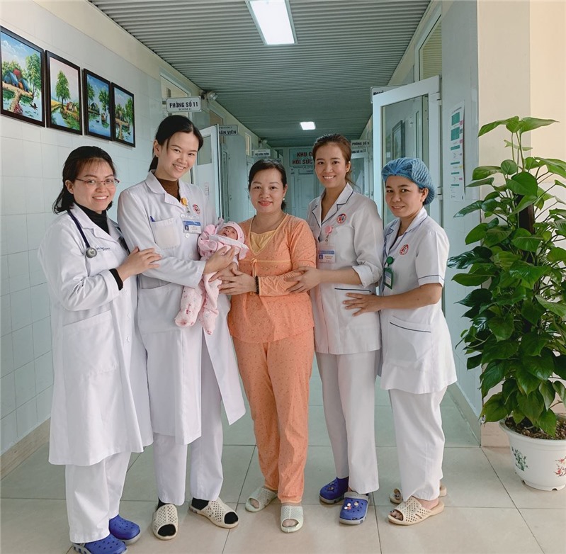 Ở tuần thai thứ 33, chị Bích Ngọc được chỉ định mổ lấy thai do nguy cơ rau cài răng lược. Sau sinh trẻ tím toàn thân, khóc rên, xuất tiết nhiều dịch miệng họng, phản xạ sơ sinh chậm, 2 phổi thông khí kém, cân nặng 2.370gr. Qua kết quả chụp X-quang tim phổi và các xét nghiệm cần thiết, trẻ được chẩn đoán: Suy hô hấp nặng, bệnh màng trong độ III/ trẻ đẻ non 33 tuần, thông liên nhĩ, còn ống động mạch. Trẻ được đặt nội khí quản, thở máy, bơm sunfactant… Sau 3 ngày điều trị, tình trạng hô hấp xấu hơn, trẻ thở máy SpO2 34 - 56%, các chỉ số máy thở ngày càng tăng cao, phù toàn thân. Các xét nghiệm theo dõi cho thấy tình trạng nhiễm trùng rõ, tăng áp động mạch phổi nặng. Tiên lượng tình trạng sức khoẻ của trẻ rất xấu, có nhiều nguy cơ chấn thương phổi, trẻ được chuyển thở máy cao tần HFO, dùng thuốc giãn mạch phổi, thuốc vận mạch … Sau 1 ngày, sức khỏe của trẻ có dấu hiệu khả quan và sau một tuần chăm sóc tích cực trẻ có tiến triển tốt: trẻ thở oxy lều hồng, không tím, phản xạ nhanh nhẹn và bắt đầu được ghép mẹ, chăm sóc Kangaroo, bú mẹ.