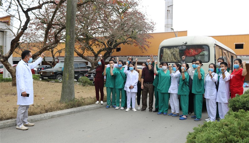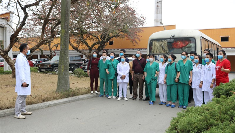 Gặp gỡ nhanh trước khi đoàn tiếp tục di chuyển vào phường Vàng Danh để làm nhiệm vụ, Ts.Bs Trần Viết Tiệp - Giám đốc Bệnh viện Việt Nam - Thụy Điển Uông Bí đã hỏi thăm sức khỏe và động viên tinh thần cán bộ, y, bác sĩ ngay tại điểm tập kết; đồng thời chuyển lời hỏi thăm, động viên của đồng chí Nguyễn Xuân Ký - Bí thư Tỉnh ủy, Chủ tịch HĐND tỉnh đến đội ngũ. Với tinh thần hăng hái, sẵn sàng, đoàn công tác tiếp tục lên đường, quyết tâm thực hiện nhiệm vụ, truy vết dịch bệnh vì sự bình yên cho nhân dân.