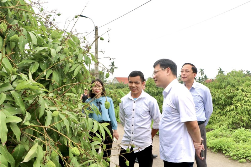 Đoàn công tác thăm quan mô hình chuẩn hoá dữ liệu mã số vùng trồng vải chín sớm Phương Nam - Uông Bí theo hệ thống/tiêu chuẩn OTAS phục vụ nội tiêu và xuất khẩu tại cánh đồng số 6, khu Phong Thái, phường Phương Nam.