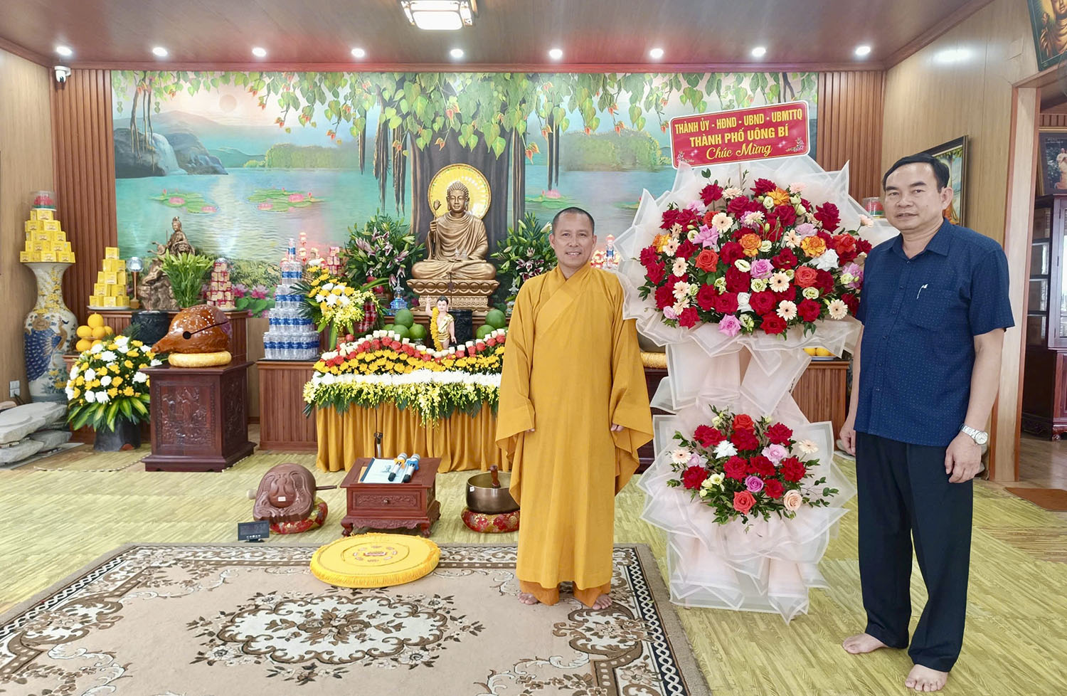 Đoàn công tác thành phố chúc mừng Đại lễ Phật đản tại chùa Long Khánh.