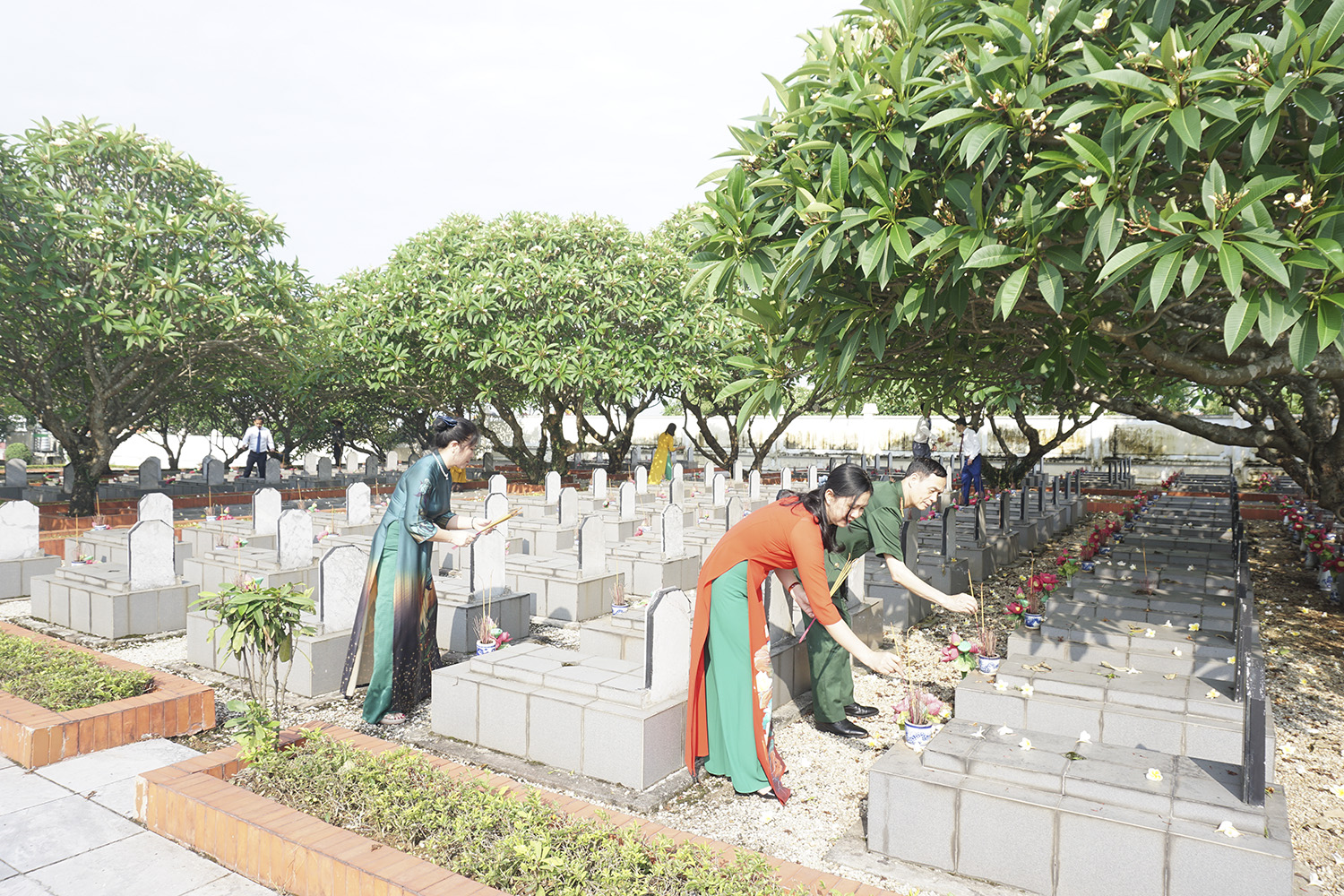 Trong không khí thành kính, trang nghiêm, đoàn đã dâng hương tưởng niệm các anh hùng liệt sĩ, tưởng nhớ Chủ tịch Hồ Chí Minh vĩ đại cùng sự nghiệp giải phóng dân tộc.