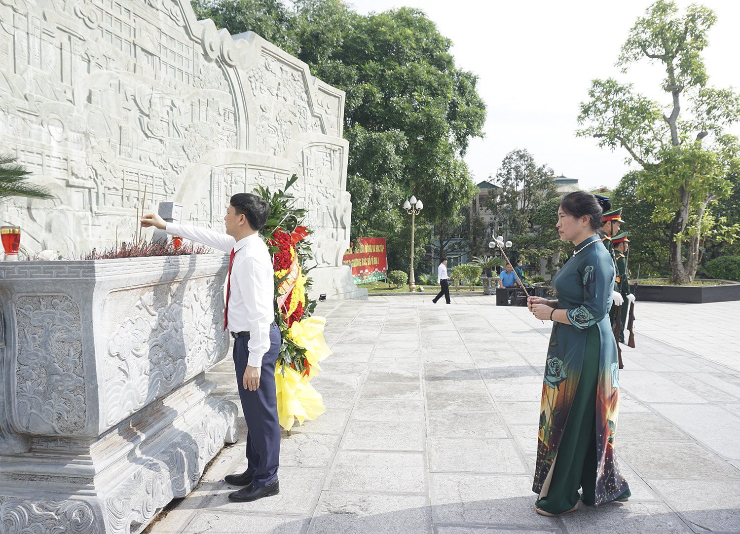 Các đồng chí lãnh đạo HĐND, Thường trực Uỷ ban MTTQ thành phố dâng hương tưởng nhớ các Anh hùng liệt sỹ.