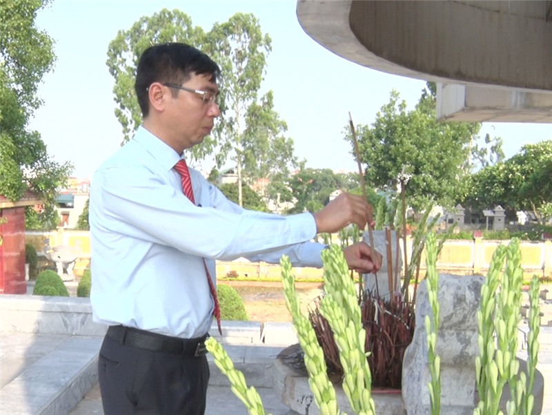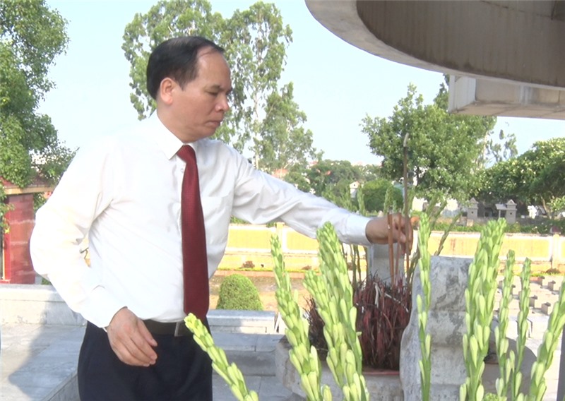 Đồng chí Đào Ngọc Sơn, UVBTV Thành ủy, Trưởng Ban dân vận Thành ủy, Chủ tịch MTTQ thành phố thành kính dâng dương tại Nghĩa trang liệt sỹ thành phố.