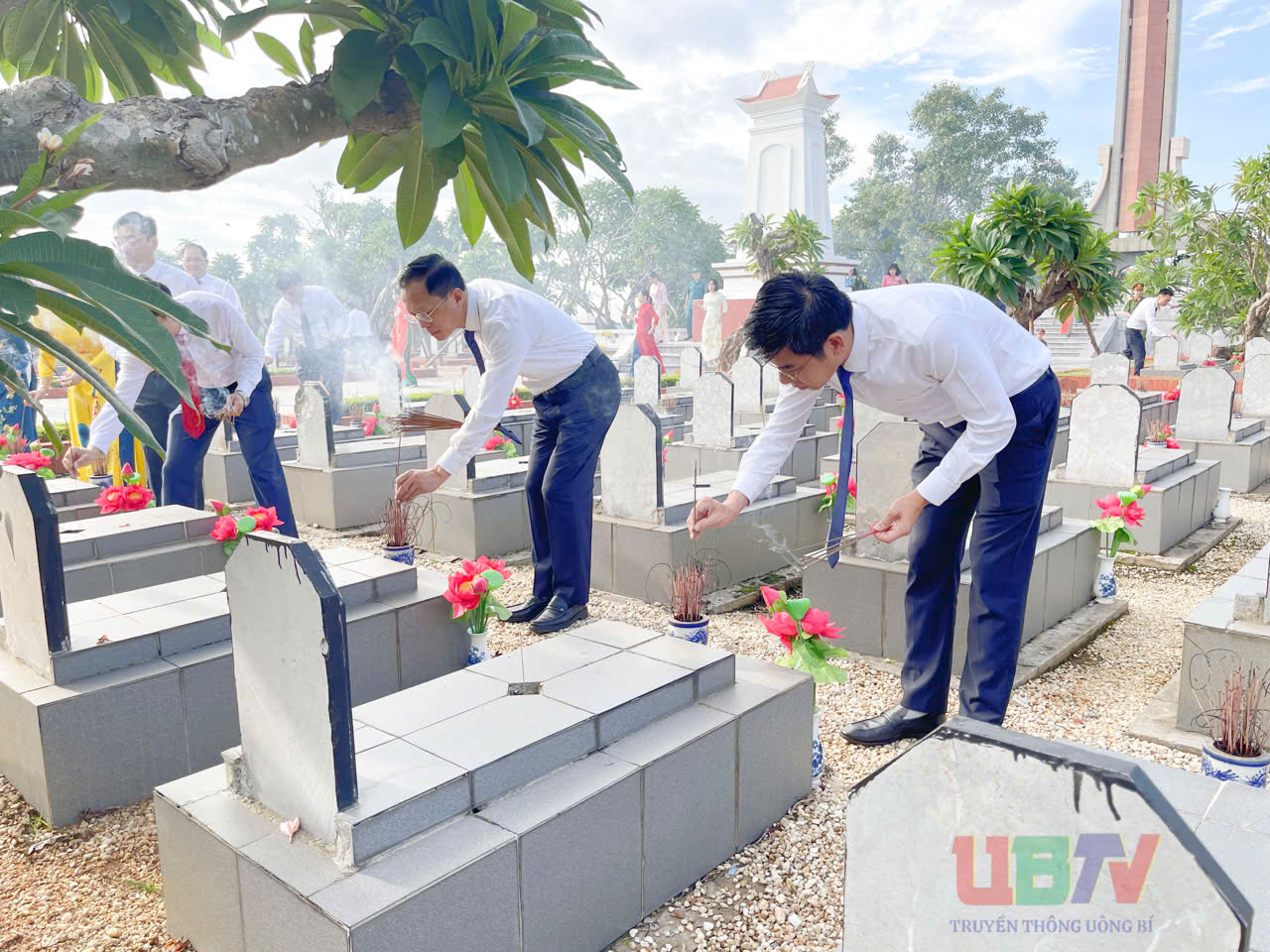 Đoàn đại biểu Đảng uỷ - HĐND – UBND, MTTQ và các tổ chức chính trị - xã hội, lực lượng vũ trang phường Uông Bí, Vàng Danh viếng Anh hùng Liệt sỹ, dâng hương tại Di tích lưu niệm sự kiện Bác Hồ về thăm Uông Bí