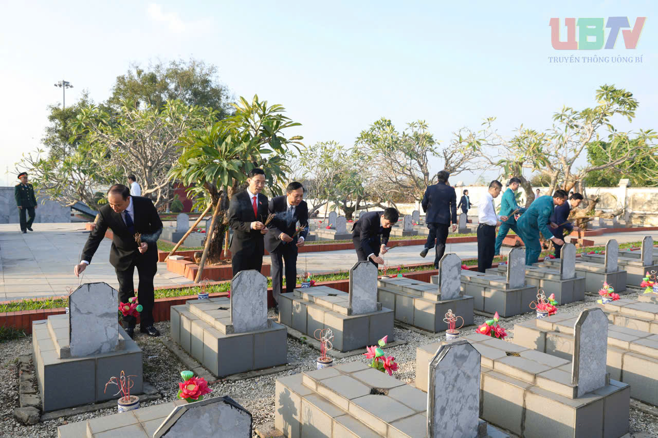Đoàn đại biểu Đảng bộ, chính quyền, các tổ chức chính trị - xã hội và lực lượng vũ trang 02 phường Uông Bí, Vàng Danh đã dâng hương, đặt vòng hoa, viếng anh linh các Anh hùng Liệt sỹ tại Nghĩa trang Liệt sỹ.
