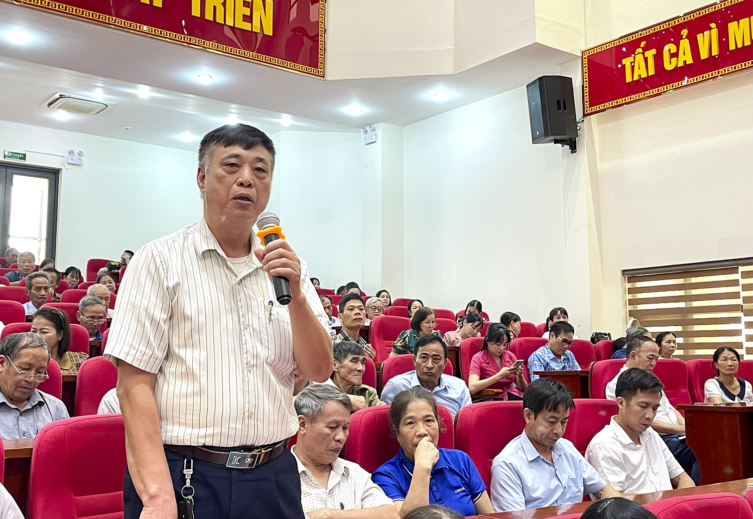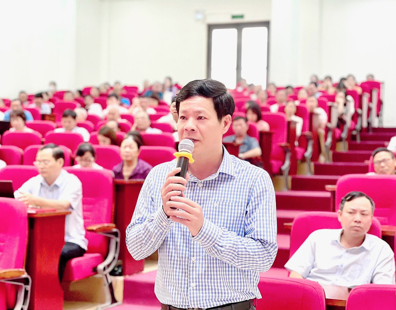 Đại biểu cử tri nêu ý kiến tại hội nghị tiếp xúc.